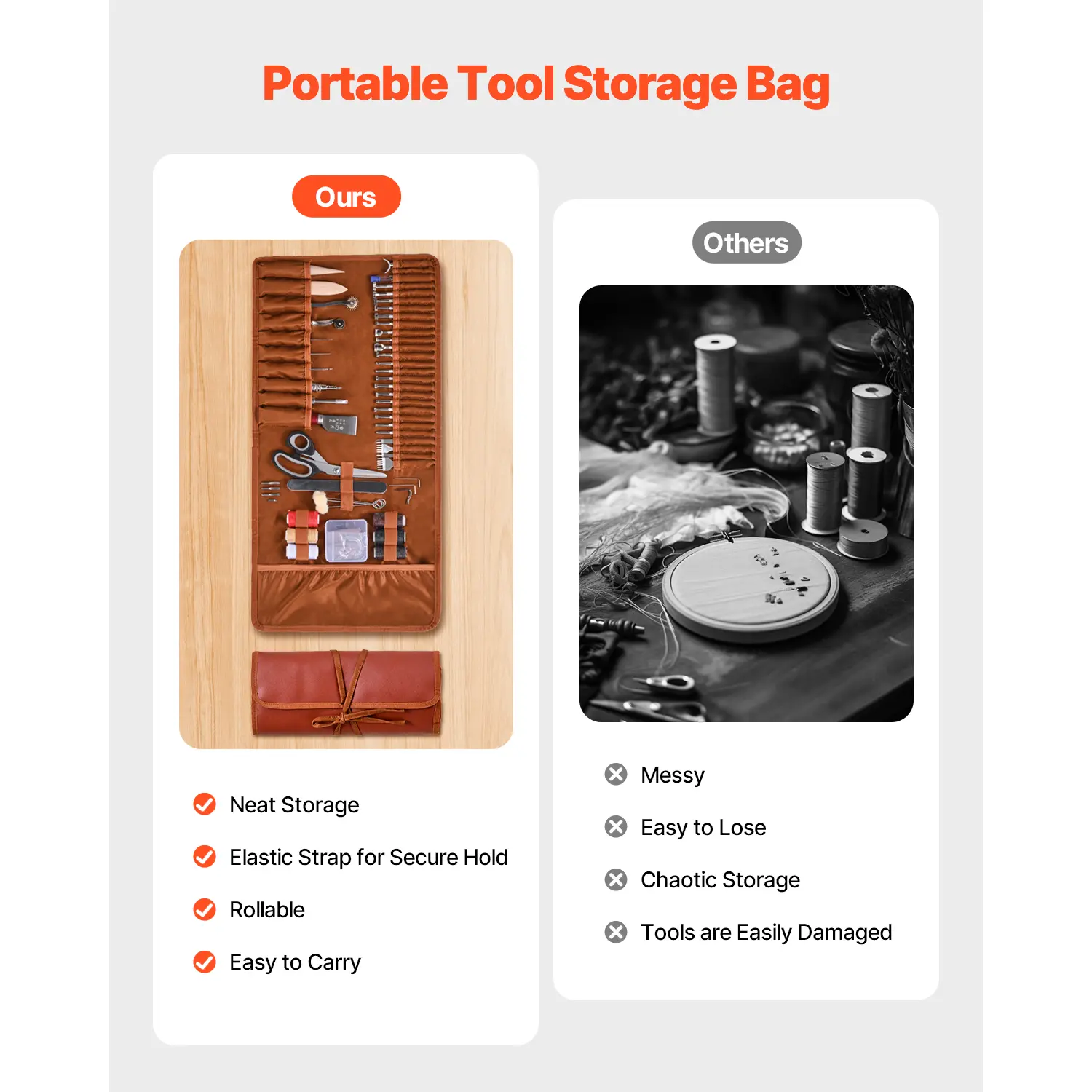 • Neat Storage: Our leather sewing kit comes with a storage bag that allows for organized, categorized tool storage, making it easy to access the tools you need. The elastic straps keep the tools securely in place, stopping them from becoming loose or falling out.
