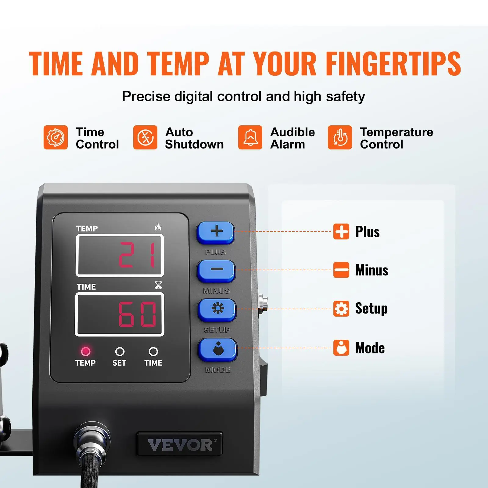• 【DIGITAL CONTROL & DISPLAY】- The precise digital controller is embedded with dual-screen displays, easy to operate & control. The silicone button boasts a comfortable touch feeling. Press (+/-) to switch ℃ and °F at will.