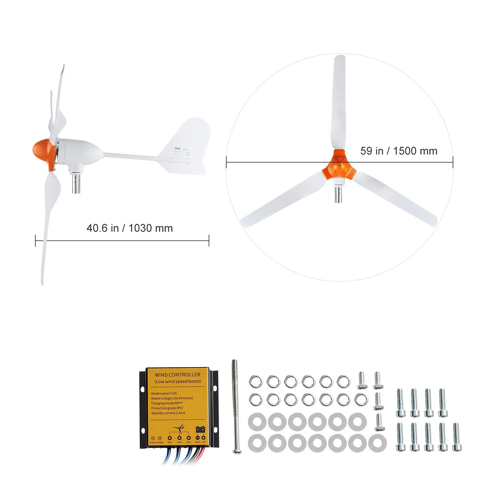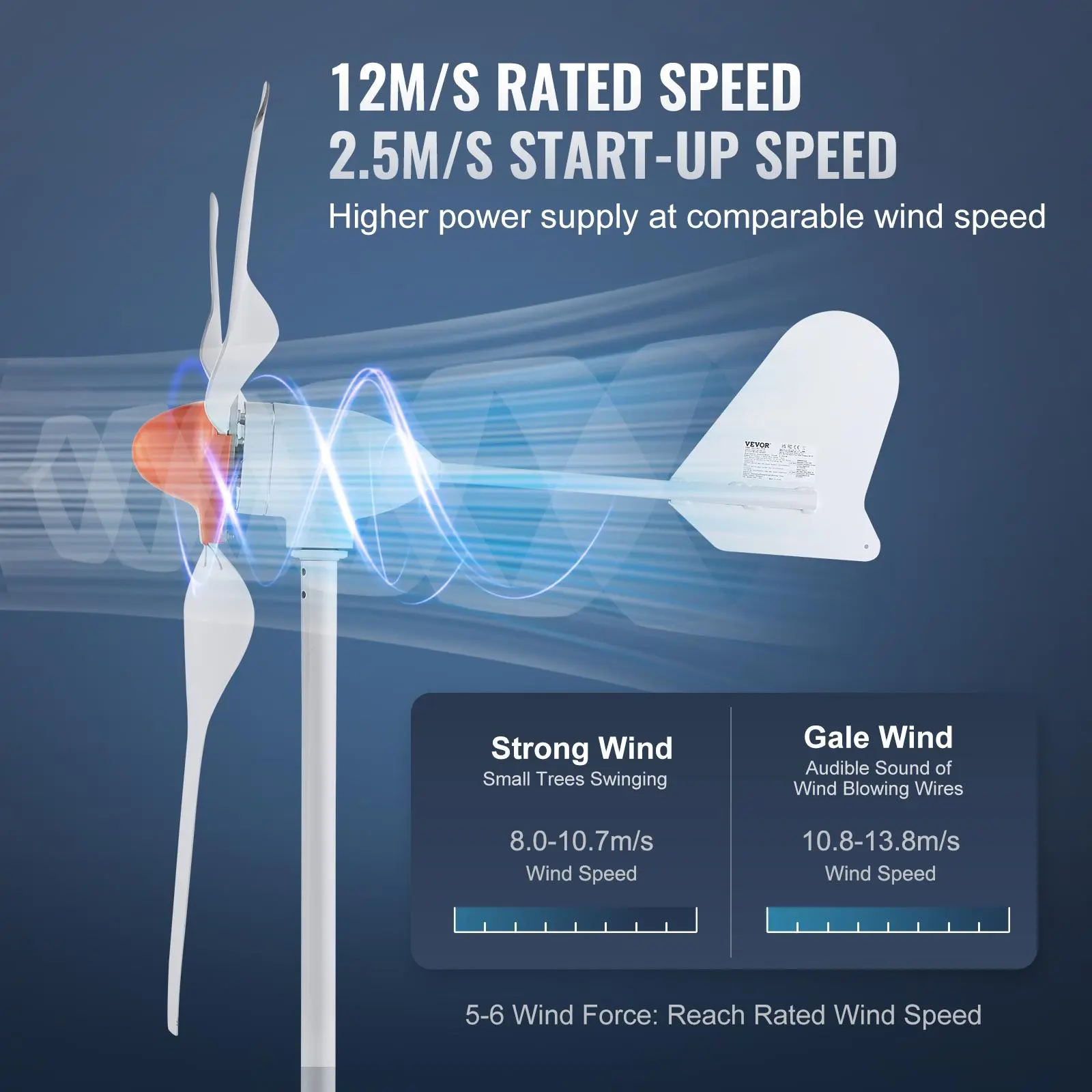 • 800W High-Efficiency Output: VEVOR 800W high-power wind turbine generator delivers exceptional wind energy utilization and efficiency, making it a versatile solution for powering various applications from homes to farms, RVs, boats, and more.