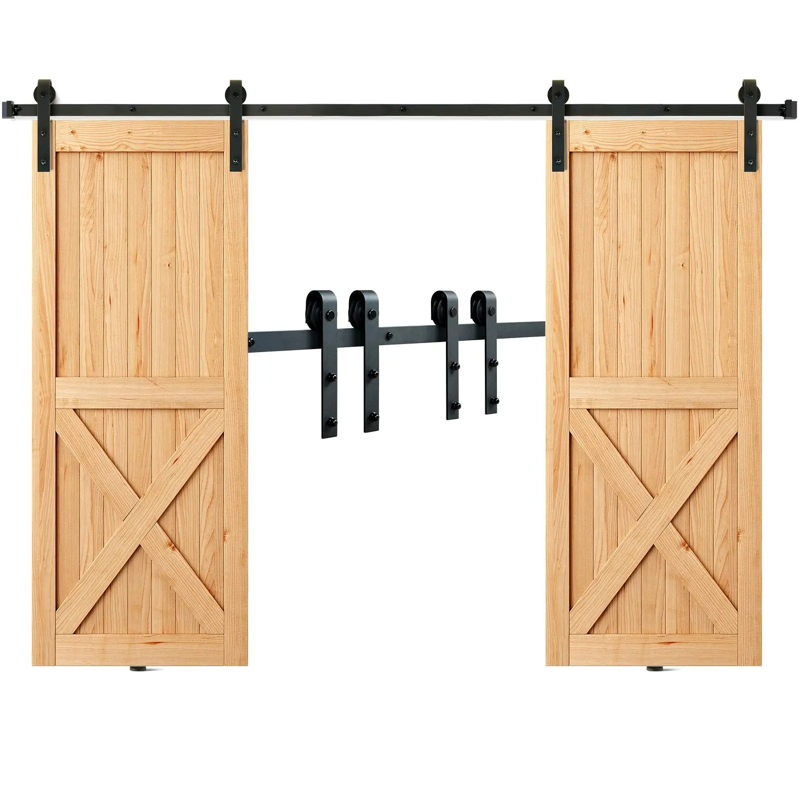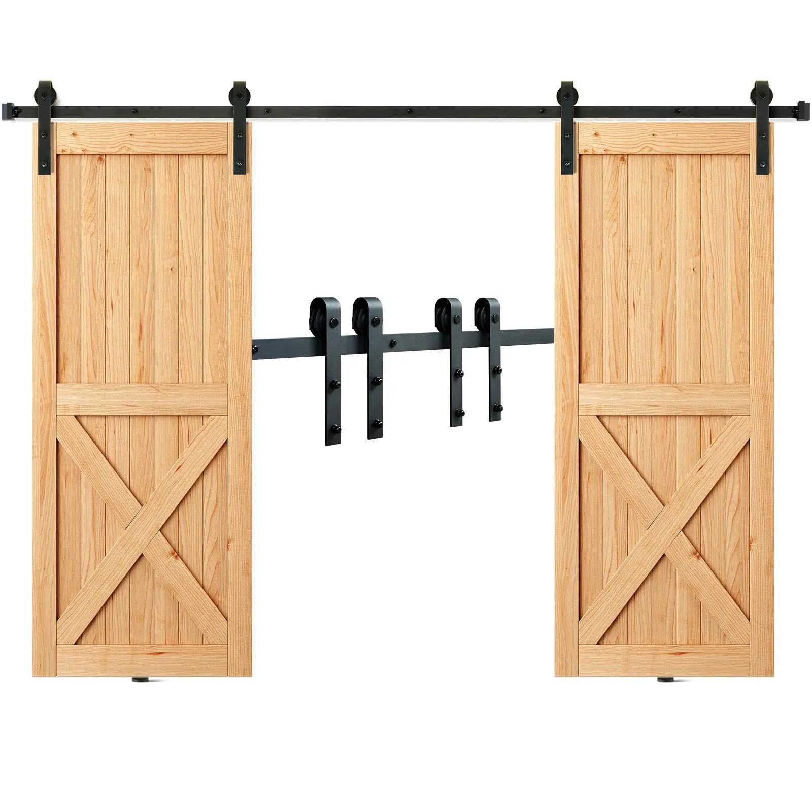 • Easy Installation: The barn door track kit for double doors comes with all the necessary hardware and detailed instructions to make installation a breeze. The barn door hardware kit includes: 2 x 4FT Sliding Barn Door Tracks, 4 x J Hangers, 7 x Plastic Washers, 4 x Anti-jumpers, 4 x Door Stoppers, Installation Manual and Other Assembly Hardware. (Attention: Hardware only, barn door is not included.)