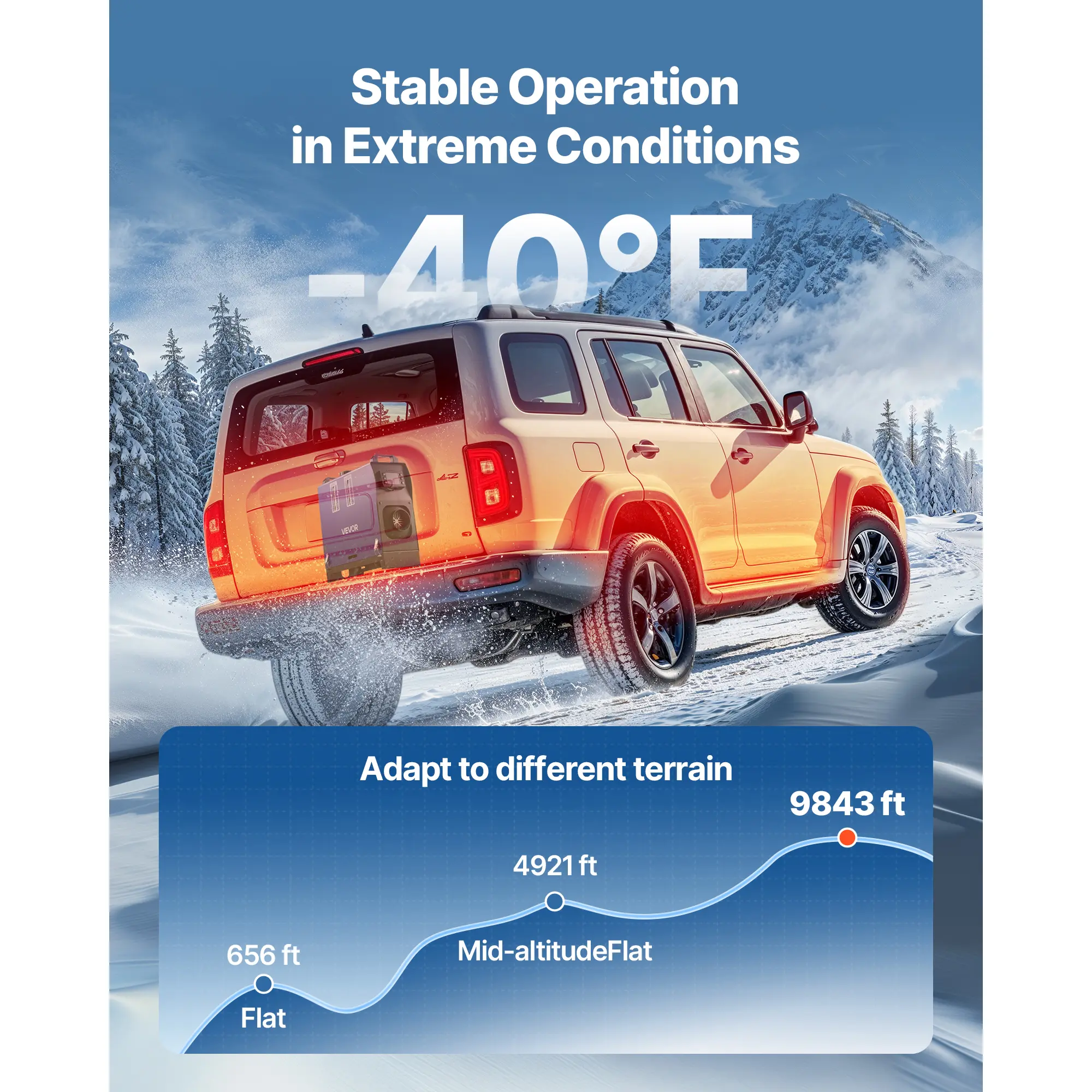 • Wide Compatibility: Our diesel parking heater is compatible with RVs, trucks, SUVs, vans, tents, and garages. It performs well below 9,842 ft elevation, making it ideal for both everyday use and winter adventures