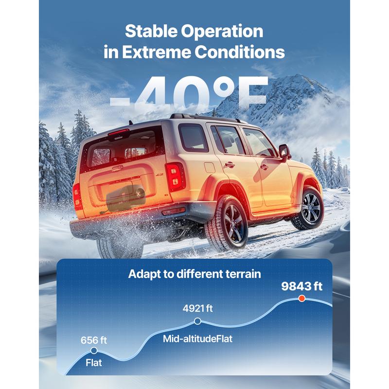 • Wide Compatibility: Our diesel parking heater is compatible with RVs, trucks, SUVs, vans, tents, and garages. It performs well below 9,842 ft elevation, making it ideal for both everyday use and winter adventures