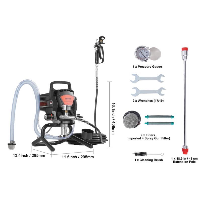 • User-Friendly Design: The pump body of the paint airless sprayer is detachable for easy cleaning with the included cleaning brush, making it easy to clean crevices and corners. You can also use the extension pole for high or ground-level work, reducing the burden of bending or climbing.