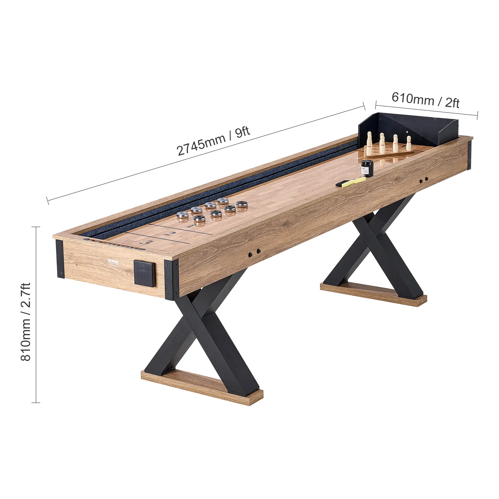 • Stable X-Shaped Legs: The shuffle board game table features thickened MDF board and X-shaped legs, increasing steadiness and security. This robust construction ensures a solid playing experience, allowing you to focus on your game without any worries about the table’s stability.