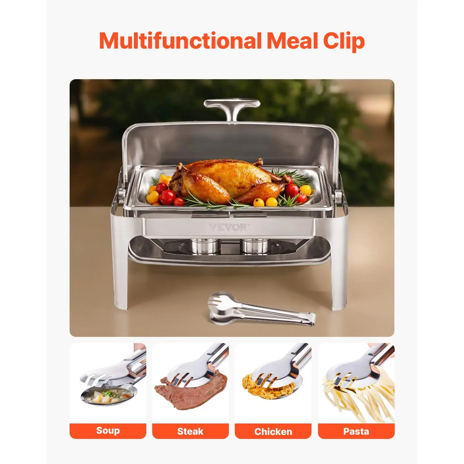 ·Ample 9QT Capacity: With a large capacity, this buffet chafer can hold multiple servings of your favorite dishes. The included multifunctional meal clip makes it easy to serve pasta, steak, soup, chicken, and more