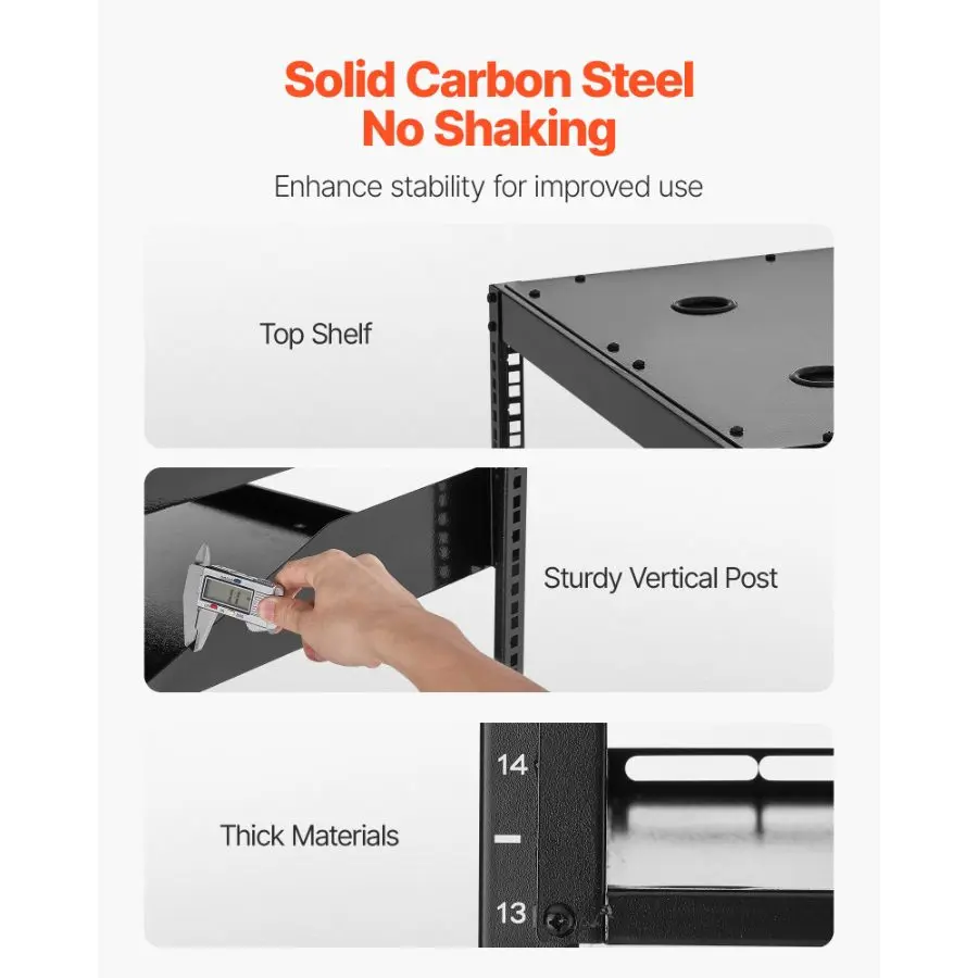 VEVOR 9U Open Frame Server Rack, 23'' - 40'' Adjustable Depth, Free Standing or Wall Mount Network Server Rack with 360 Casters, Heavy Duty 4 Post Holds All Your Networking IT Equipment AV Gear RouterVEVOR 16U Open Frame Network Rack, 23 in Depth, Wall Mounted or Floor Standing Server Rack, Heavy Duty 4 Post, with Vented Shelves & Mounting Hardware, Holds All Your Networking IT Equipment AV Gear