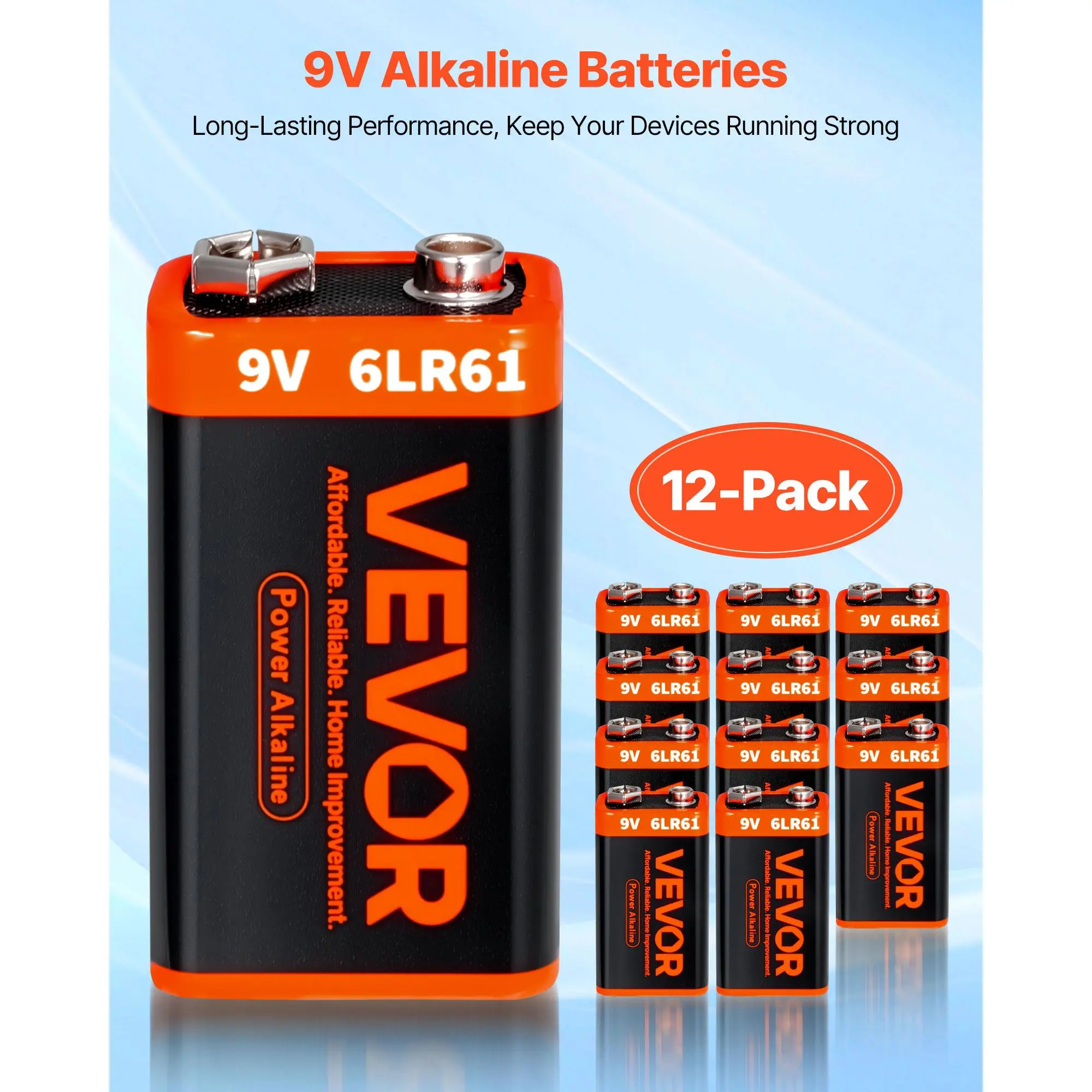 • Long-Lasting Performance: Get reliable, long-term power for high-drain devices like smoke detectors, measurement tools, and professional equipment. Each alkaline battery delivers a steady 9 volts, reducing the hassle of frequent replacements