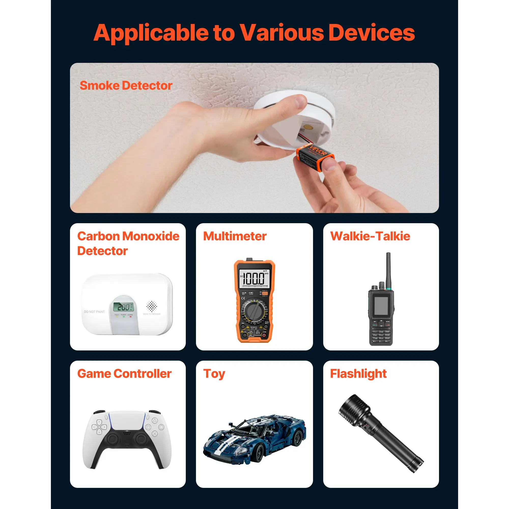 • Versatile for Everyday Electronics: Ideal for garage door openers, smoke detectors, carbon monoxide alarms, clocks, radios, toys, and flashlights. Our 9 volt batteries are ideal for home, office, camping trips, and emergency kits