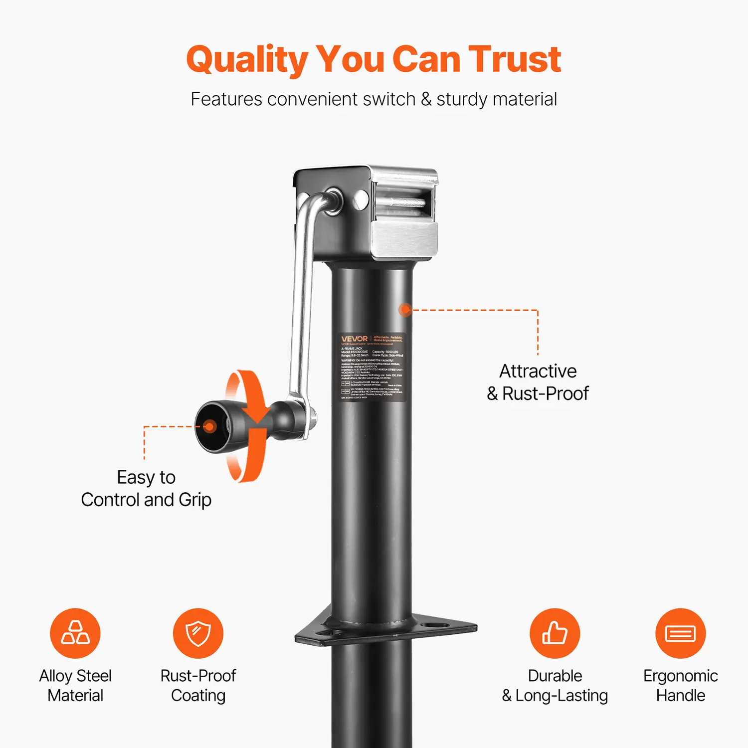 • Reliable and Durable: This trailer tongue jack is made of tough alloy steel with a rust-resistant, powder-coated finish. It's ready for anything, standing up to all kinds of environments without giving in to rust.