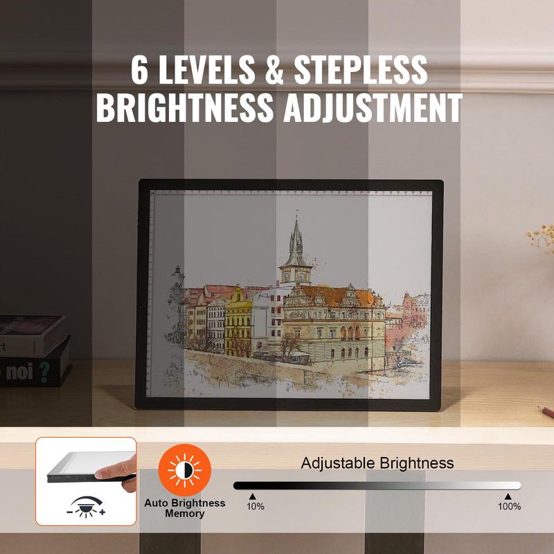 • 6-Level & Stepless Brightness: You can adjust the drawing light board brightness to suit your environment—long press for smooth, stepless dimming or short press to cycle through 6 brightness levels, enhancing eye comfort. The smart memory function recalls your last brightness setting for added convenience.