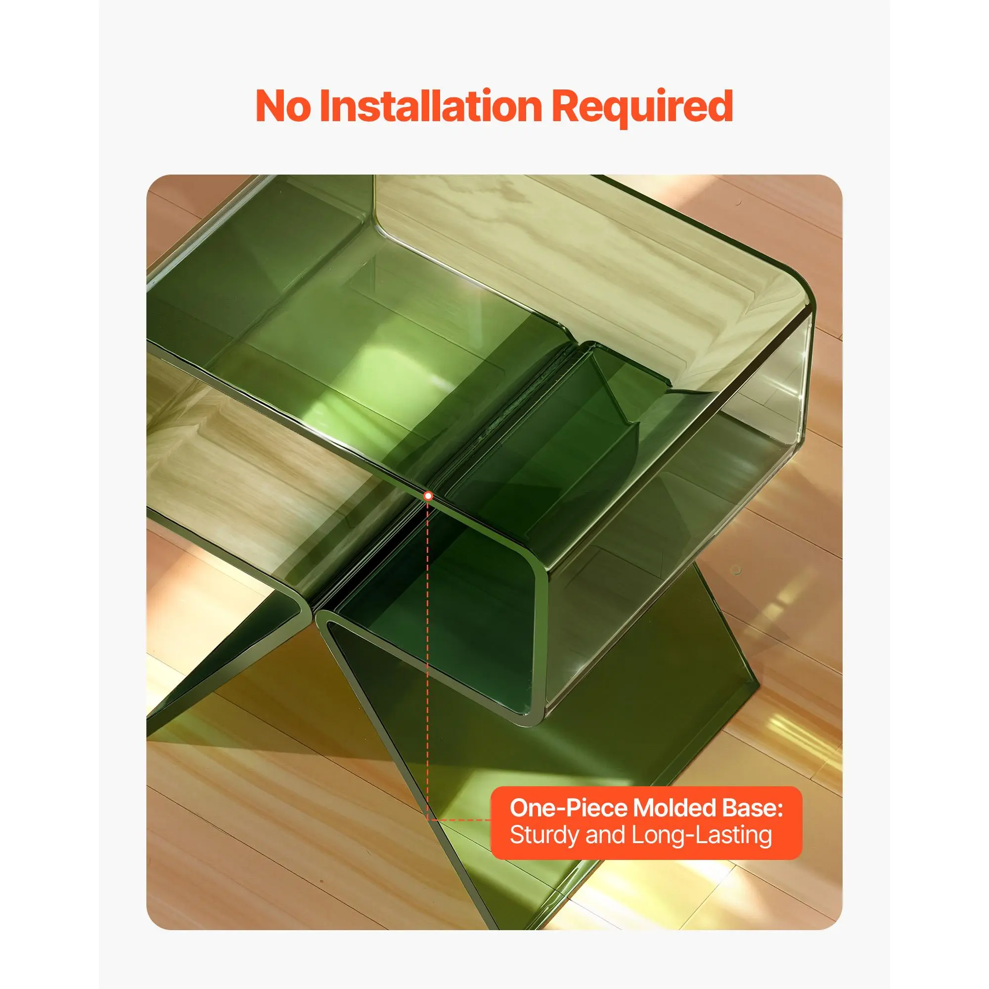 • Natural Acrylic Material: Made from high-quality acrylic, this acrylic table has a crystal-clear surface that stays bright over time. More impact-resistant than tempered glass, it’s a secure and sturdy option, especially for homes with kids and pets