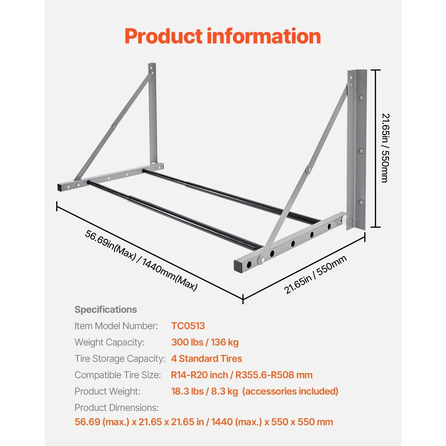 • Versatile Usage: Ideal for any environment—garages, auto shops, homes, and more—this versatile wall-mounted garage tire rack offers a practical solution for easy and flexible tire storage.