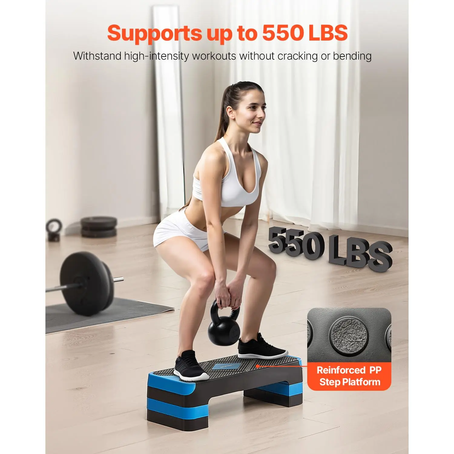 • Reinforced Construction: This step aerobic platform is built to handle jumps, squats, and intense workouts without cracking or bending. The high-density PP base ensures long-term durability for home gyms