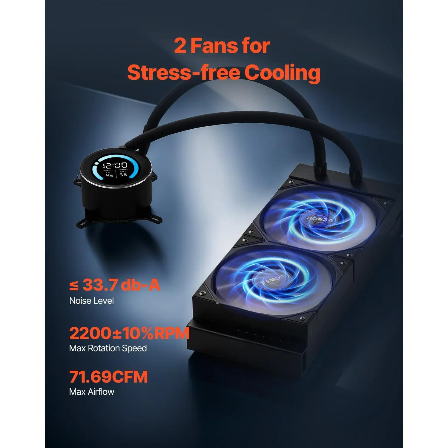 • Outstanding Cooling Effect: The fan’s maximum speed reaches 2200RPM with a maximum airflow of 71.69 CFM, enhancing the heat dissipation of the heat sink for improved CPU performance,making it an ideal CPU liquid cooler.
