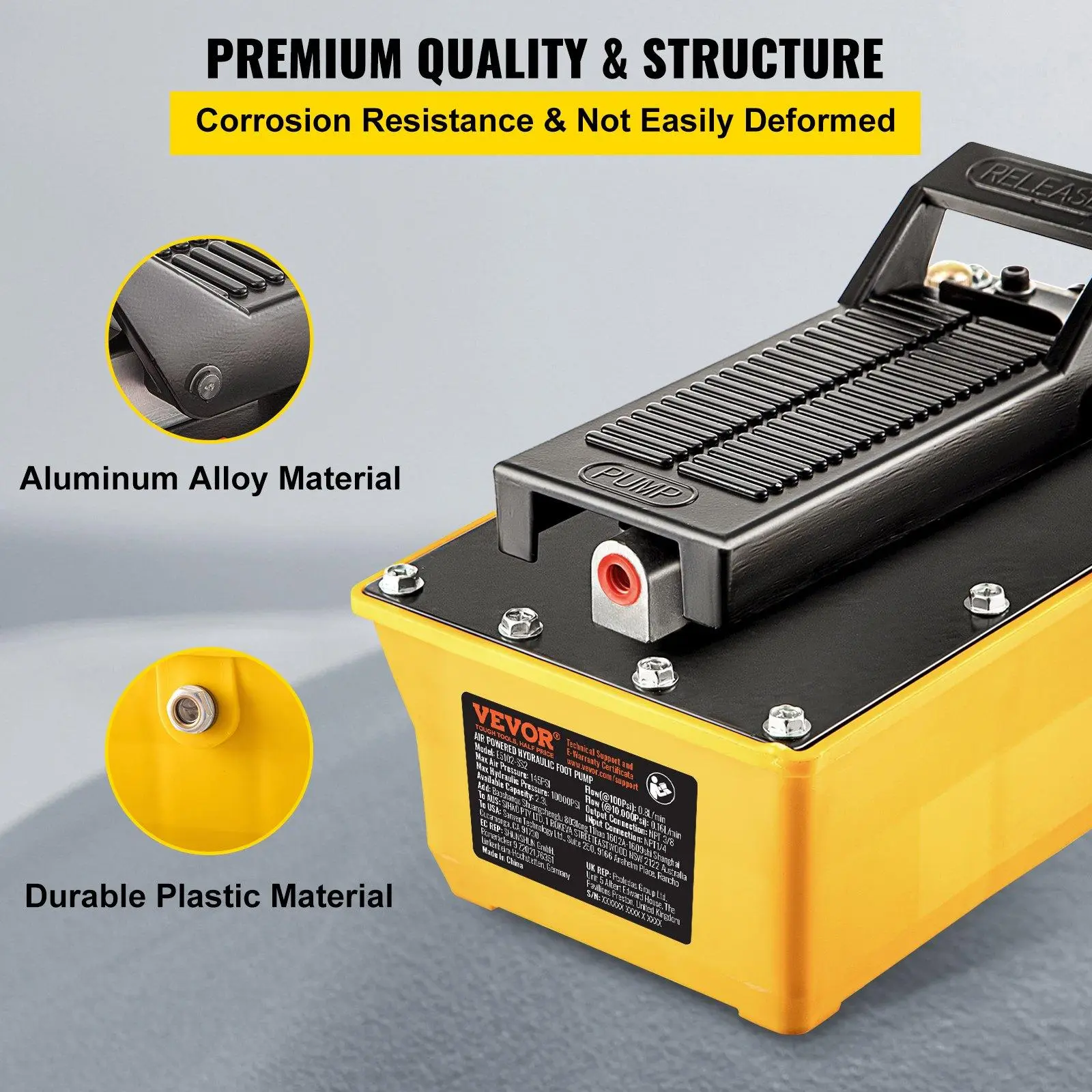 ·Foot-Actuated Design: The air hydraulic pump adopts a user-friendly foot-actuated design to provide hands-free operation for pumping and releasing the load, which is able to save the operator's time and effort with strong power and high output pressure.