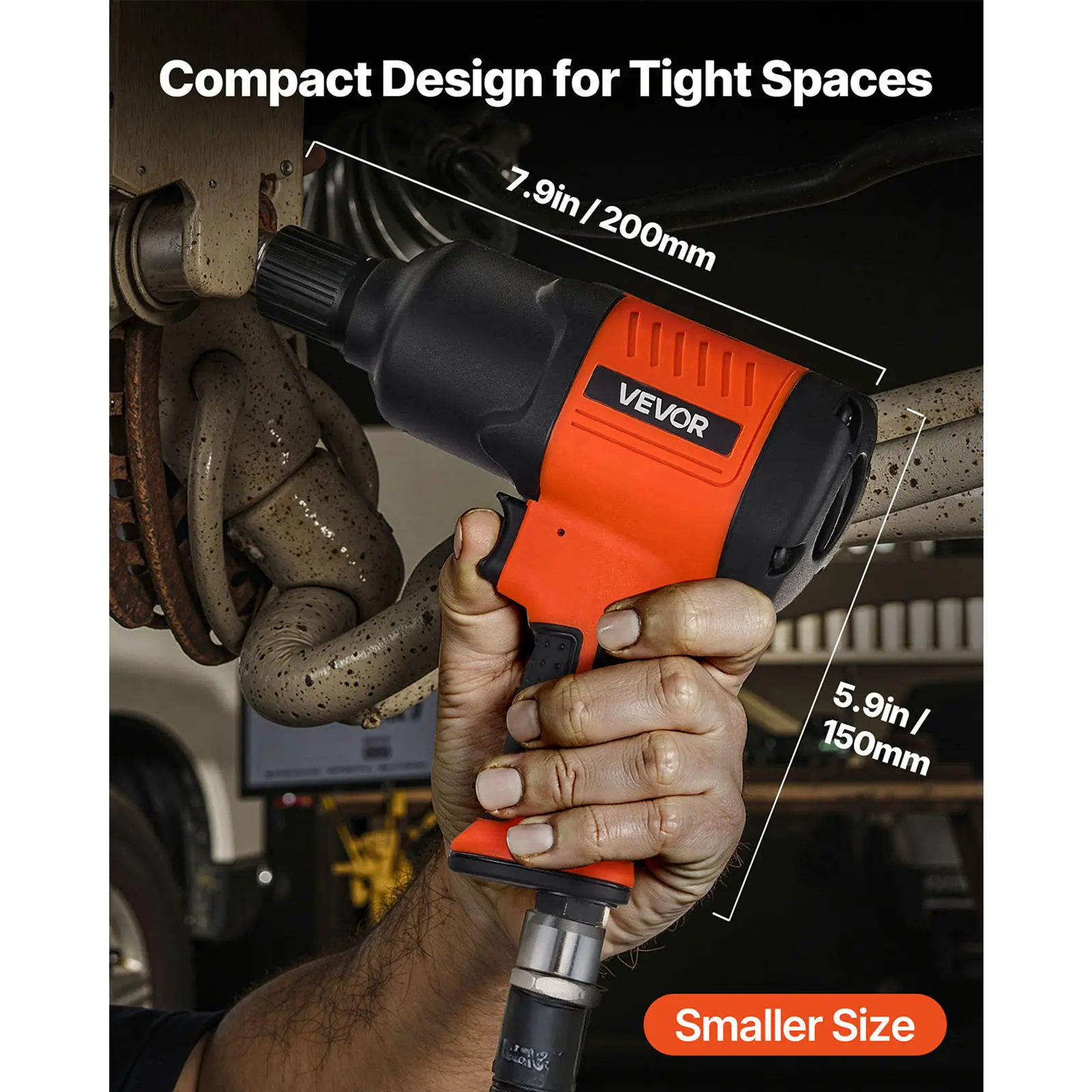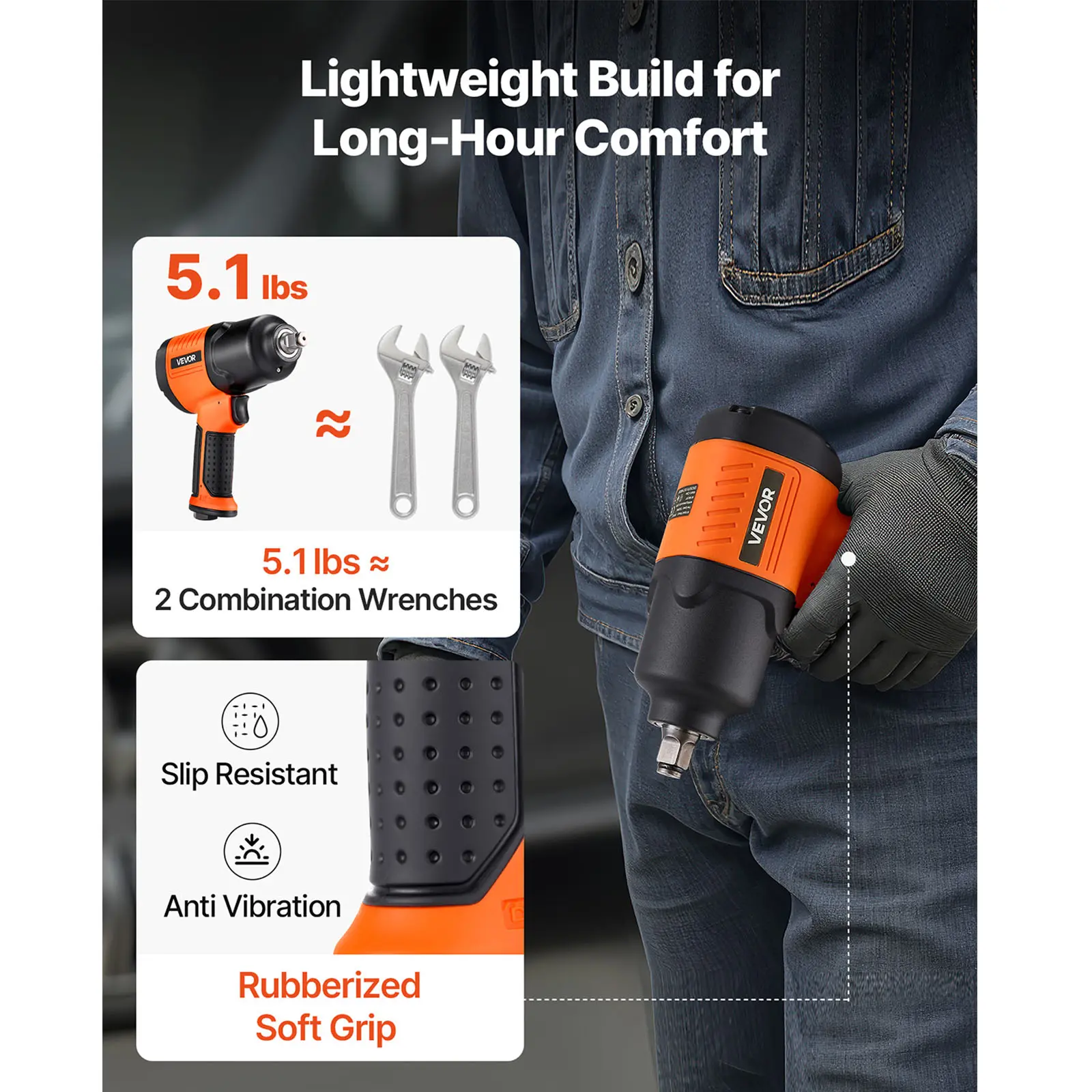 • Lightweight and Compact: Designed with a lightweight body and an ergonomic rubberized grip, this 1/2" pneumatic impact wrench offers superior comfort and anti-slip control. Less vibration and hand fatigue for extended use