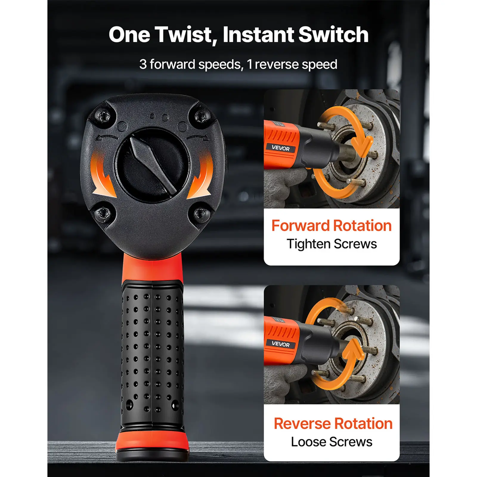 • Easy Torque Control: Equipped with a 4-speed torque adjustment (3-speed forward, 1-speed reverse) and a forward/reverse switch, this air impact gun allows you to easily switch modes and adjust torque output for various auto repair tasks