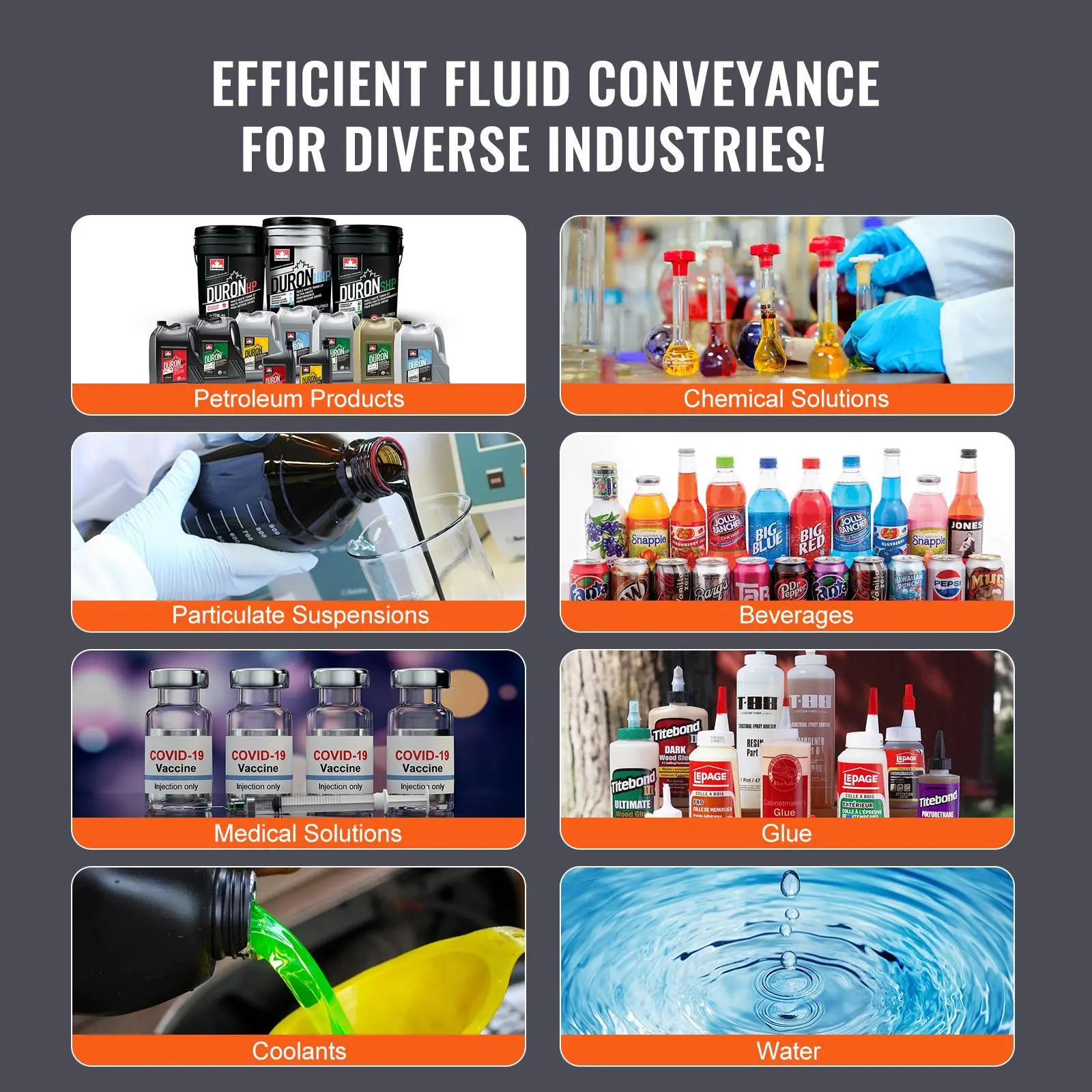 • Fit for Multiple Fluids: Our waste oil pump is capable of processing a wide array of fluids from waste oil, alcohol, hydraulic oil, gasoline, diesel, and detergents to beverages. Its extensive applications span industries including petroleum, metallurgy, mining, coatings, printing, water treatment, and automotive. Whatever your industry, whatever your fluid, our diaphragm pump is engineered to handle it with unmatched efficiency and reliability.