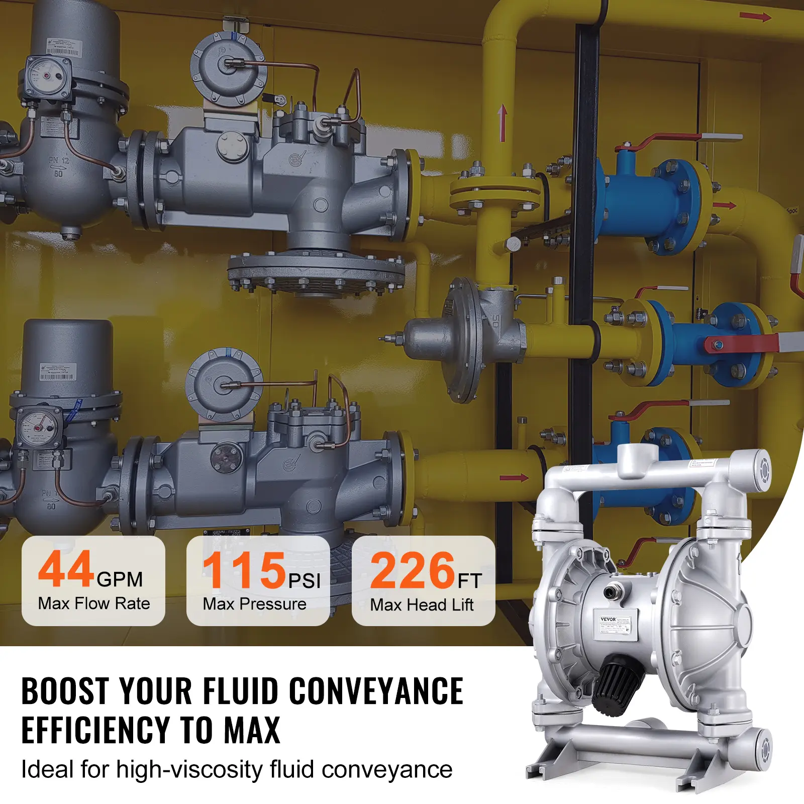 • Exceptional Pneumatic Performance: Elevate your fluid handling with our air diaphragm pump! It boasts standard inlet/outlet dimensions of 1.5 inches and an air inlet size of FNPT 1/2 inch, designed to seamlessly integrate with your existing pipelines and fittings, enhancing its pneumatic performance. Embrace the power of professional pneumatic design in your operations today!