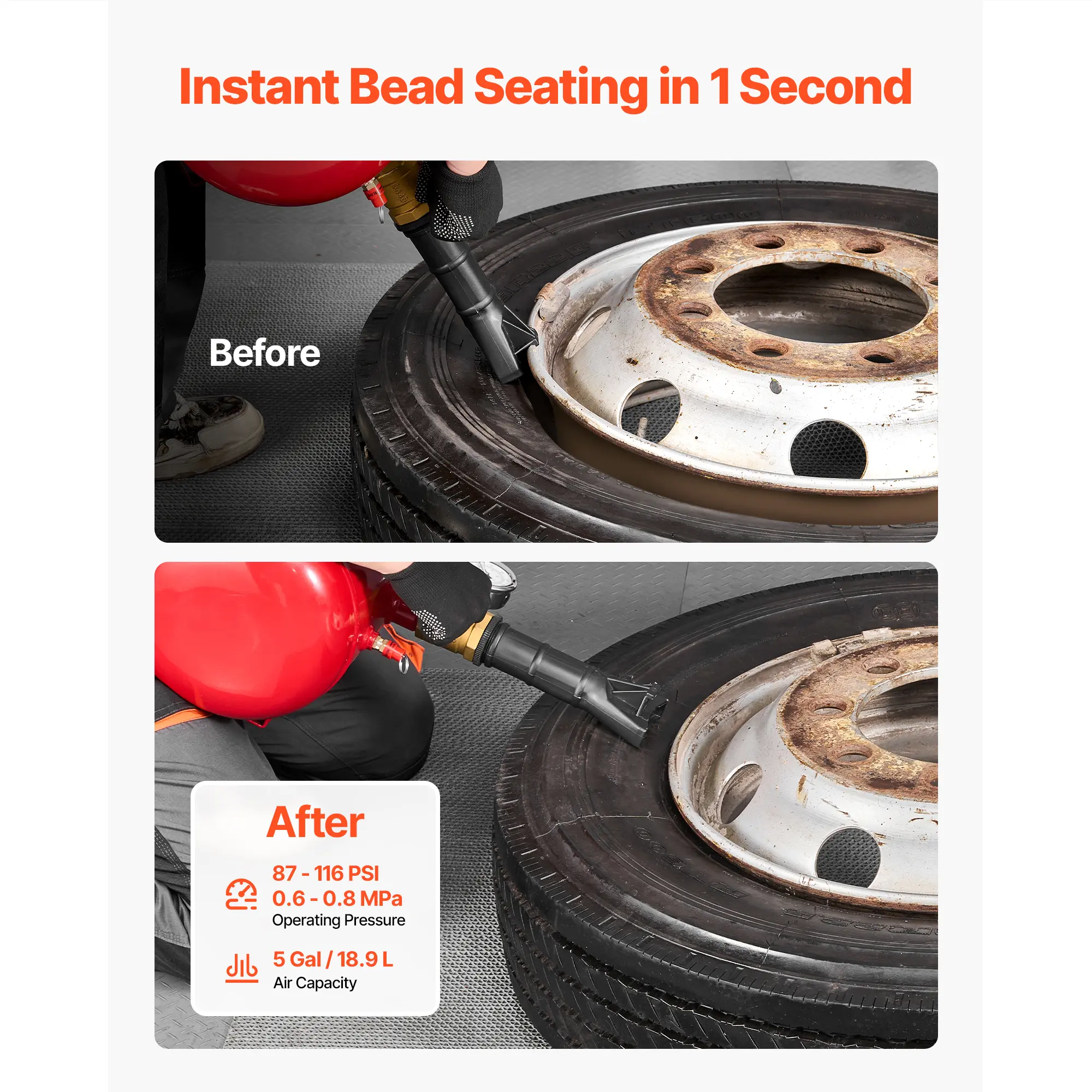 • Instant Inflation: This tire bead seater boosts tire-changing efficiency, saving time and effort. By instantly releasing high-pressure air, it forces the tire bead back into the rim groove, completing bead seating quickly and reliably