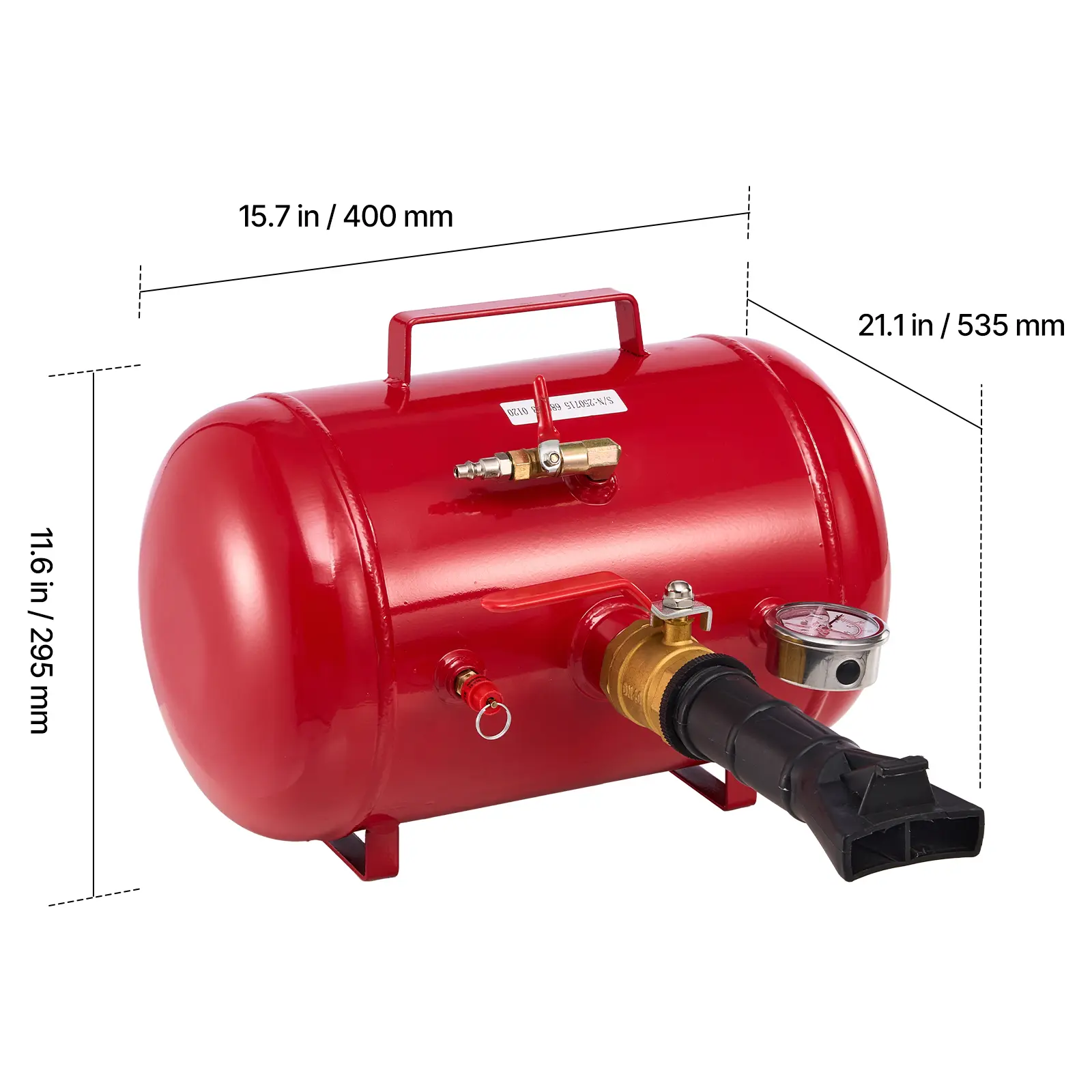 • Tire Compatibility: 5 Gal / 18.9 L cylinder, fits tubeless tires ≤ 22.5 in / 572 mm. Operating pressure: 87–116 PSI / 0.6–0.8 MPa. Suitable for ATVs, tractors, pickups, trucks, Jeeps, campers, and construction vehicles. Ideal for home garages, workshops, farms, and service stations