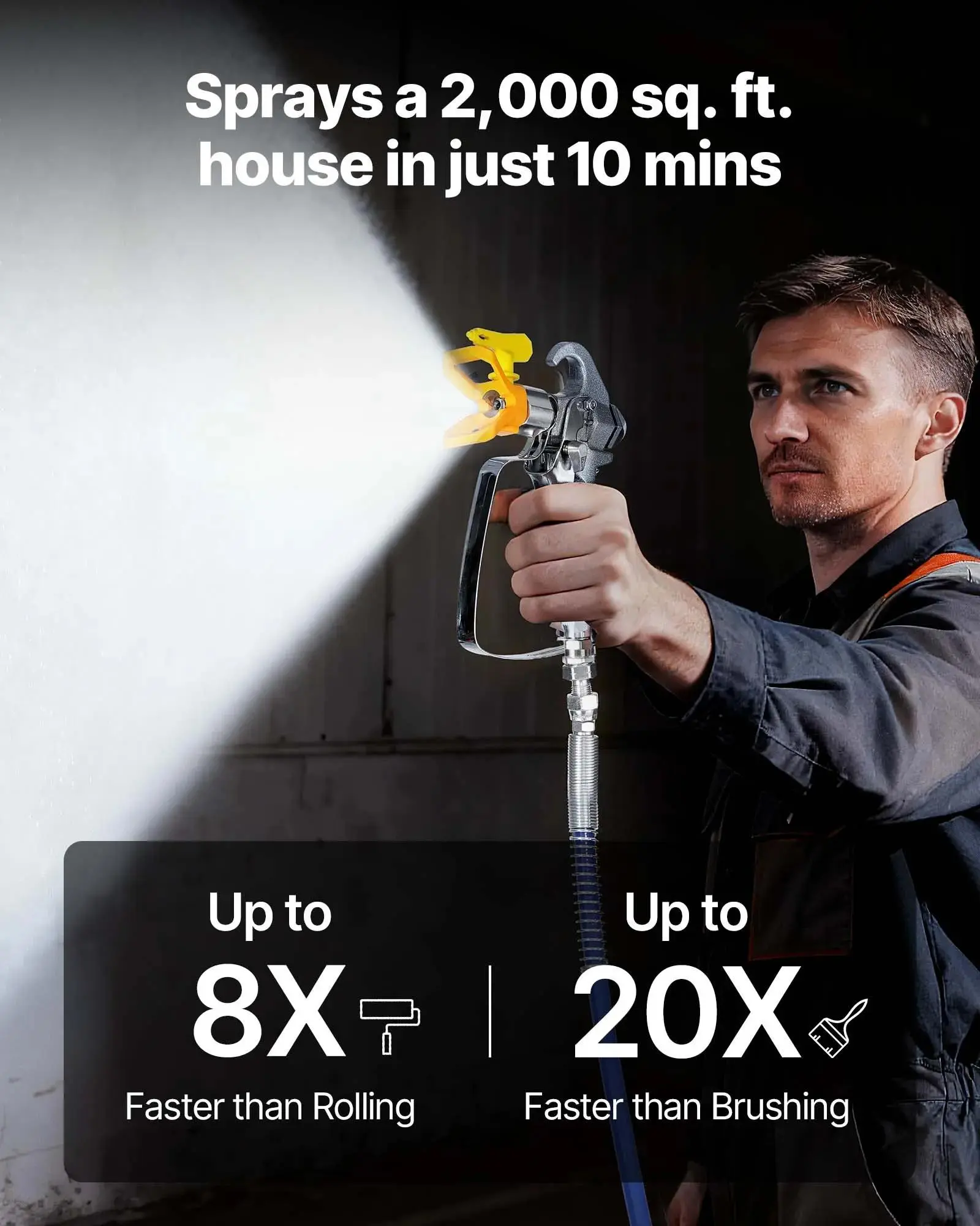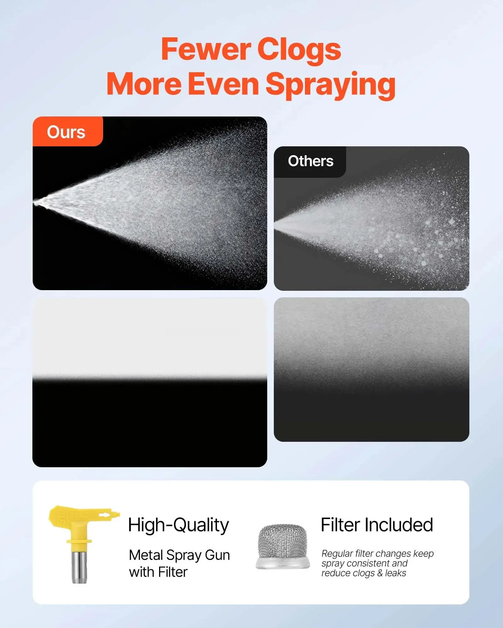 The high pressure airless sprayer features an adjustable motor, professional rubber hose, and an all-metal frame. This minimizes breakdowns and ensures dependable performance, keeping your projects running smoothly from start to finish.