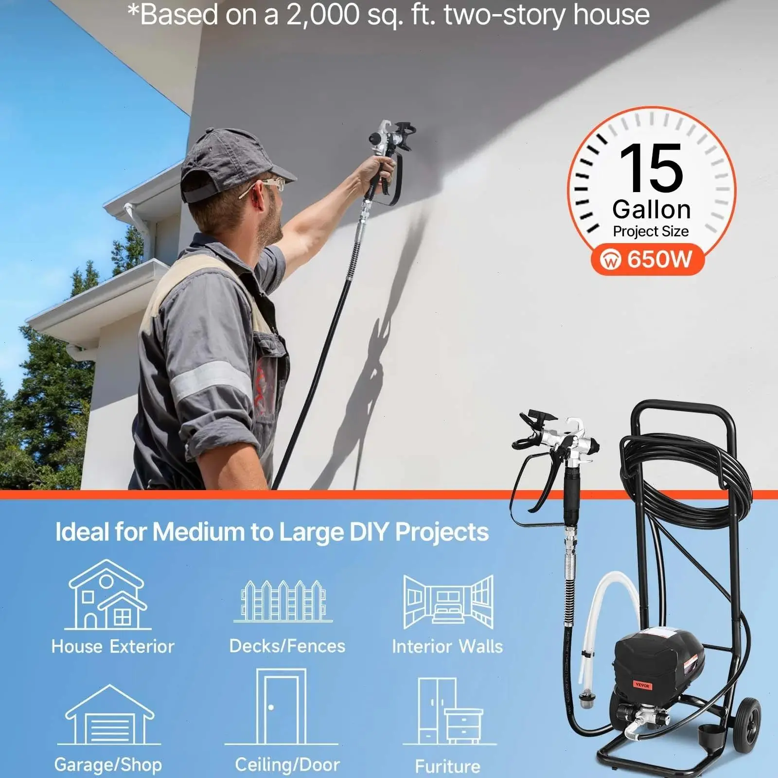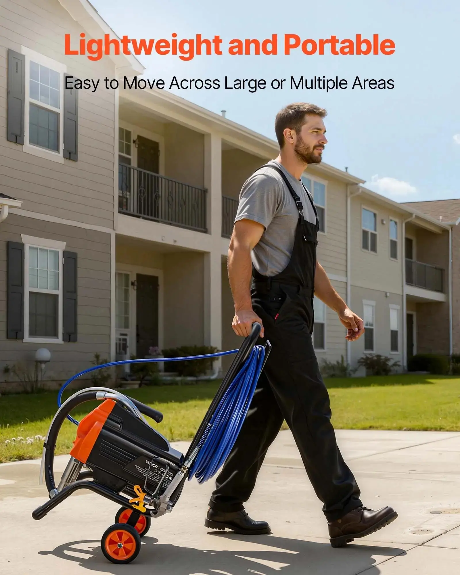 5. VEVOR Stand Airless Paint Sprayer, High Pressure Airless Sprayer with Cart, Cleaning Brush, Hose, Extension Rod, Nozzles, Electric Spray Paint Machine for Large Apartments, Buildings or Factory Buildings.