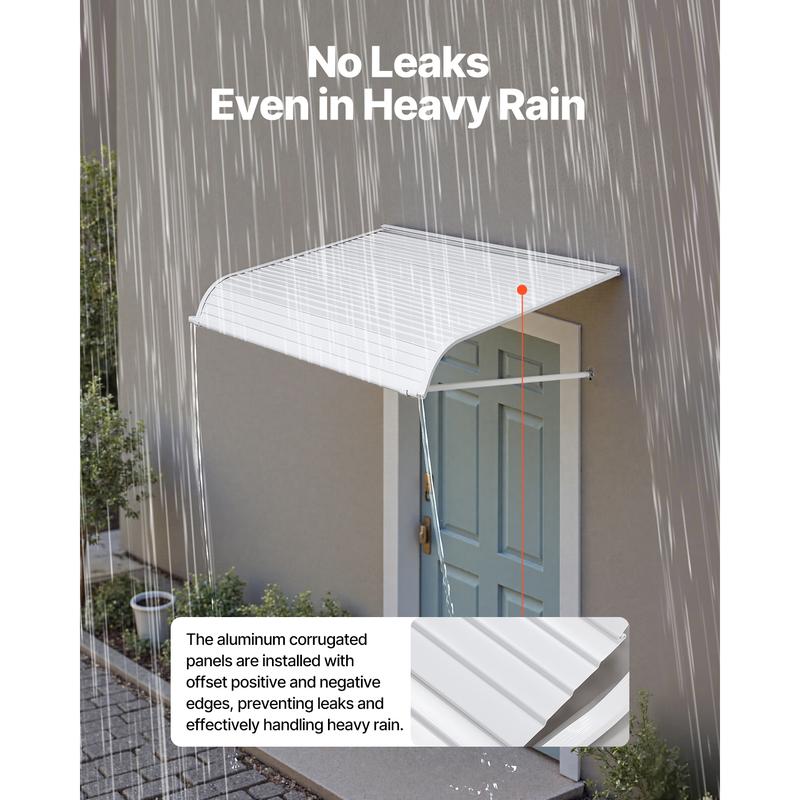 • Smart Water Flow Design: The window awning door canopy features curved edges and drainage system that effectively channel rainwater, preventing water accumulation and keeping the canopy clean and dry. The 7.87-inch (20 cm) wide aluminum ripple panels are tightly connected, ensuring no leaks even on rainy days.