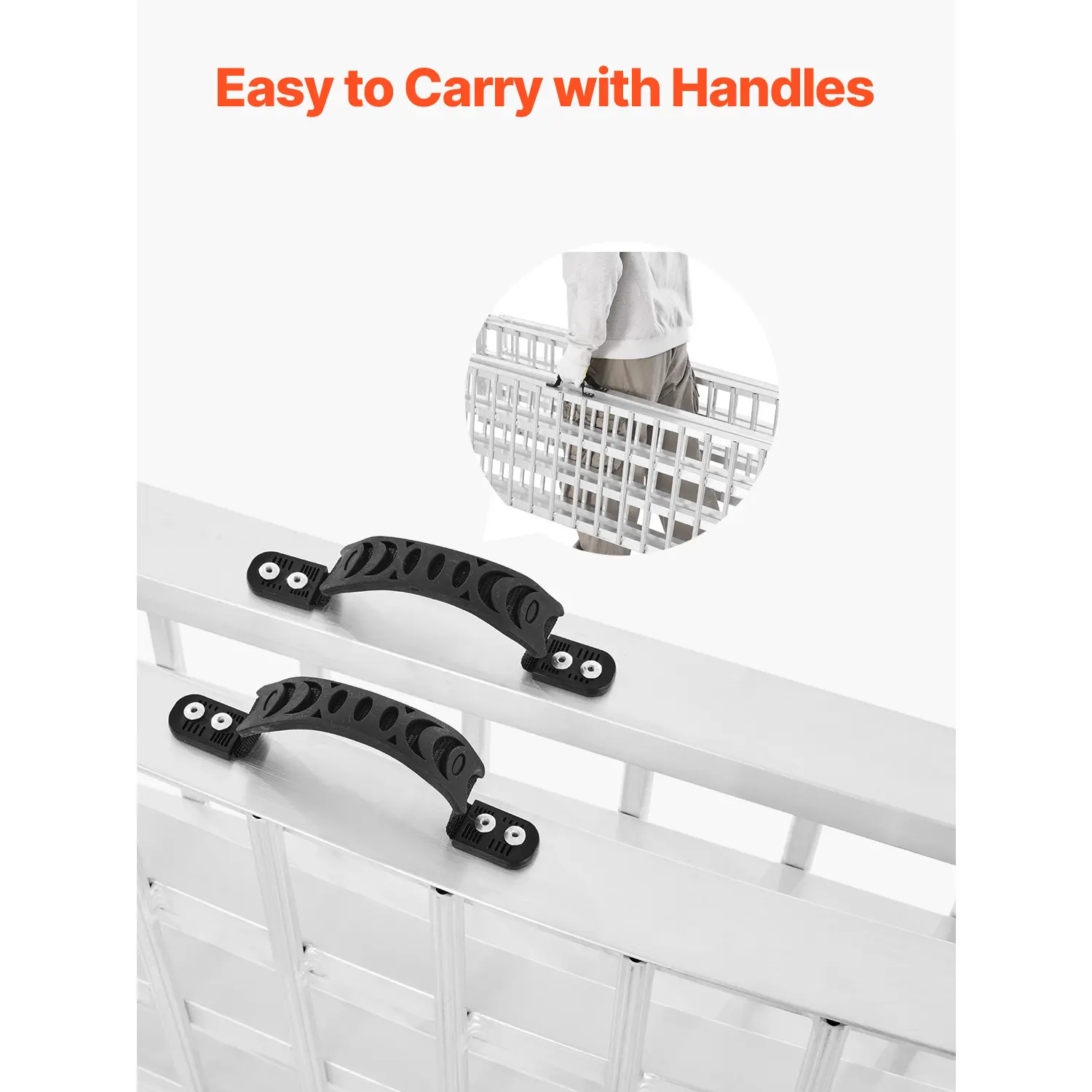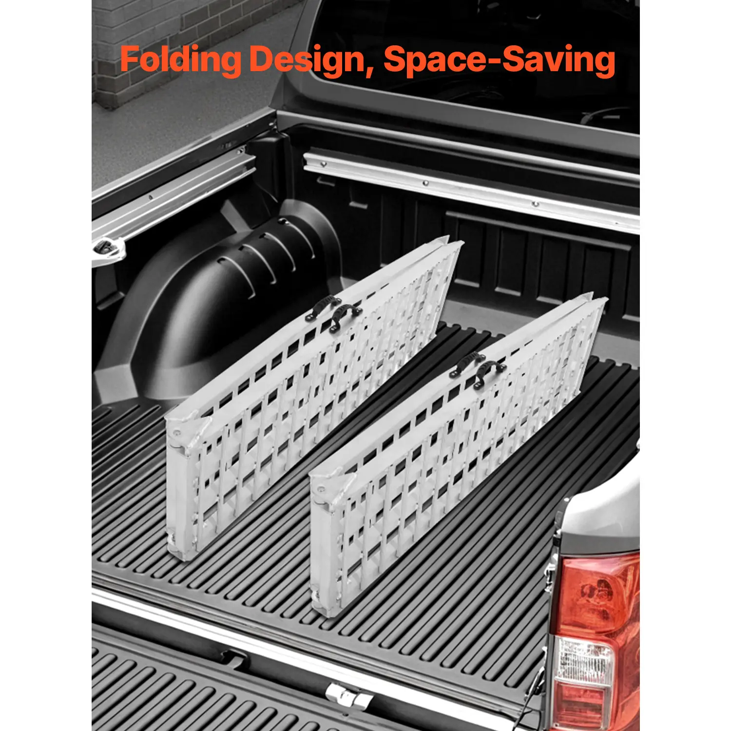 • Quick Folding Design: The ramp folds and unfolds within 1 second, featuring reinforced triangular joints for smooth operation. A rubber handle makes it easy to carry, and its compact design fits conveniently in garages or car trunks without taking up much space.