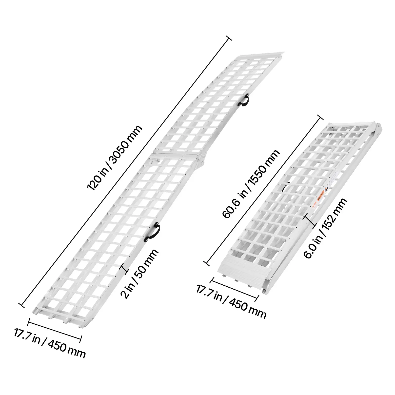 • 2000 lbs Load Capacity: This arched ramp supports a combined load capacity of up to 2000 lbs, offering a lightweight yet strong design. The 2-piece set is ideal for transporting ATVs, UTVs, motorcycles, push lawn mowers, and electric scooters.