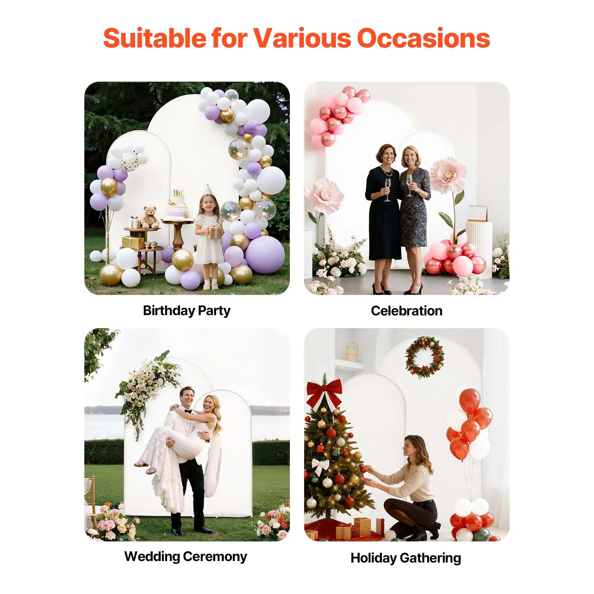 • Stable Support: This metal arch backdrop stand features a reinforced base welding. It enhances structural stability, provides solid support, and reduces wobbling to ensure your decorations stay in place