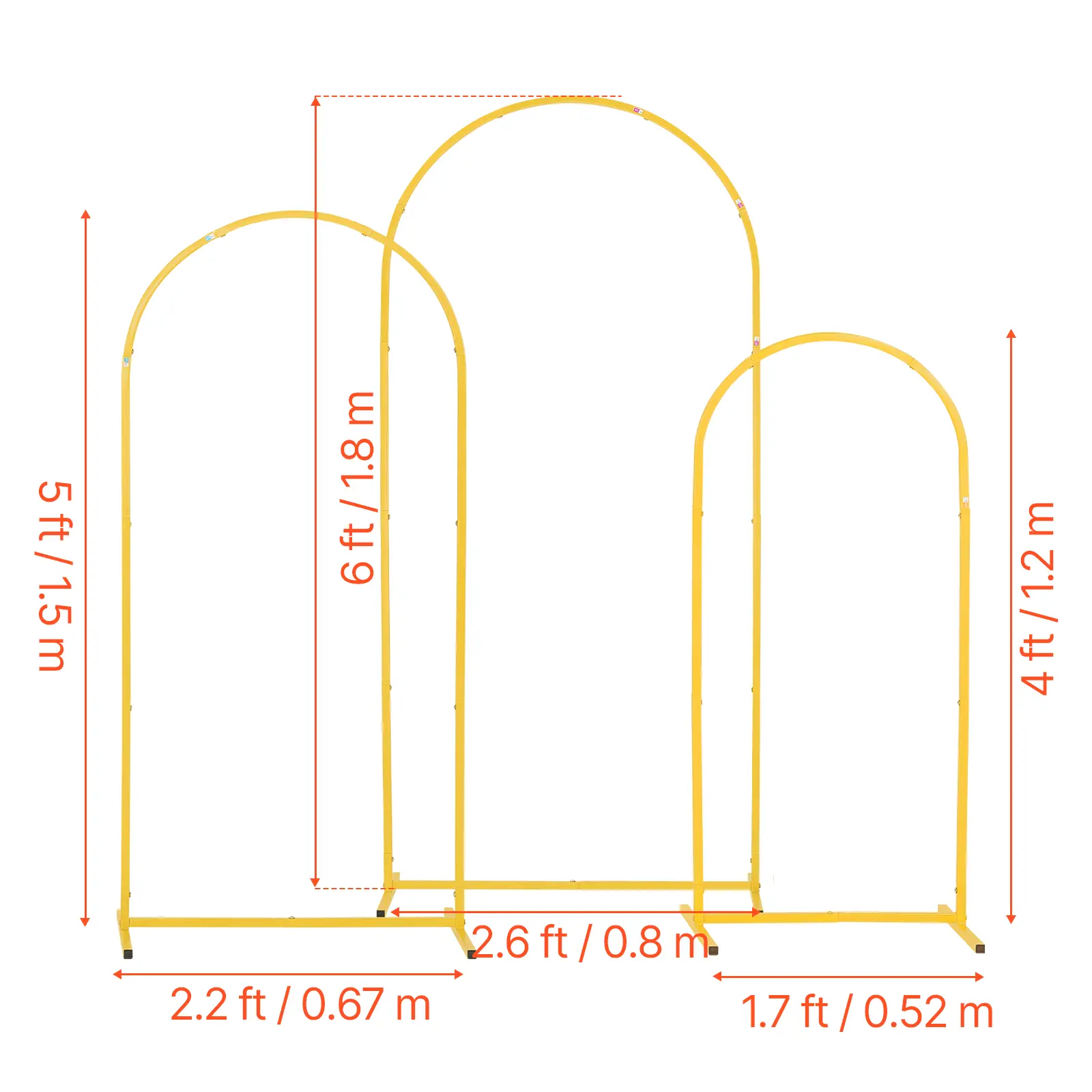 • Elegant Design: This 3-set arch backdrop stand, with dimensions of 6 x 2.6 ft, 5 x 2.2 ft, and 4 x 1.7 ft, is suitable for indoor and outdoor use. It enhances the visual appeal, creating a unique romantic atmosphere for any celebration