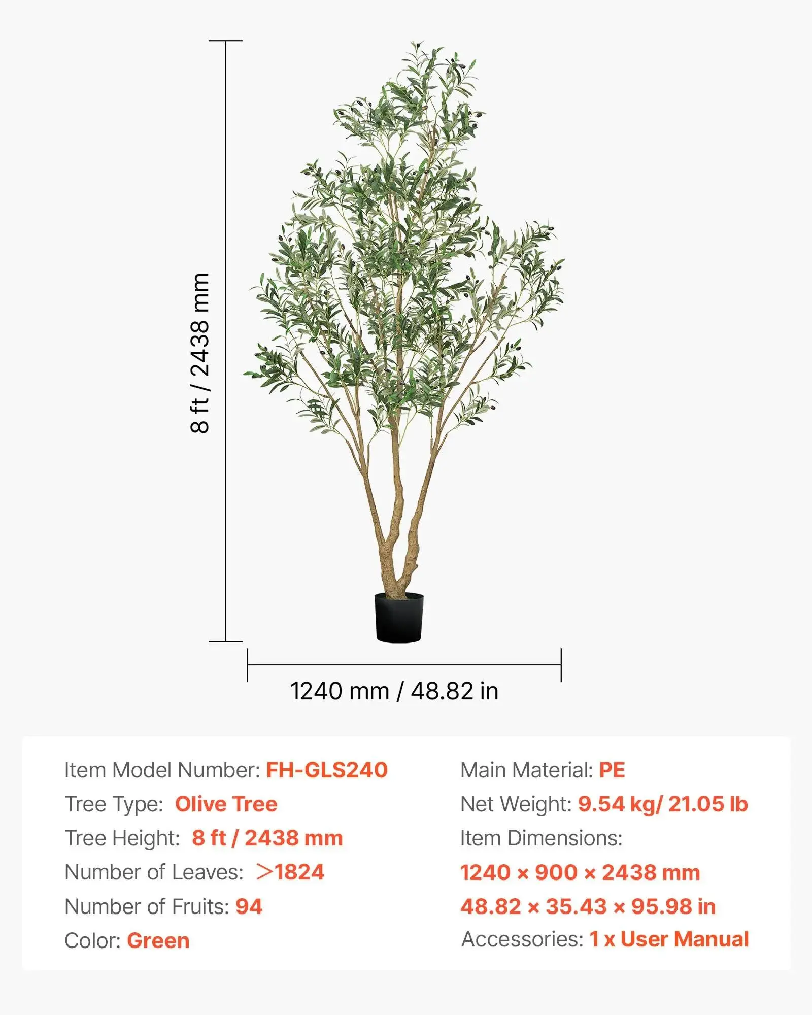 VEVOR Artificial Olive Tree Tall Fake Plant with Black Pot for Home Office Use