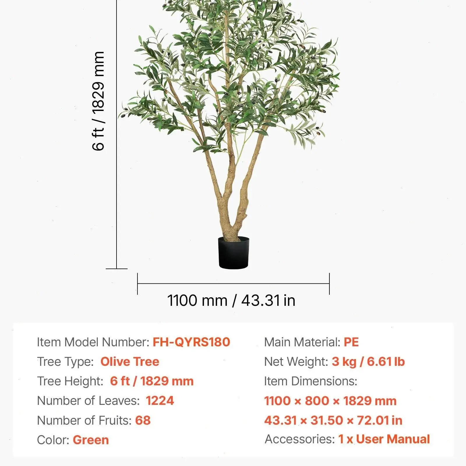 ·Lifelike All-Season Design: This artificial olive tree features vibrant green leaves and lifelike fruits. Made of durable rubber silk fabric with detailed textures and rich colour, it brings year-round freshness to any home or commercial space