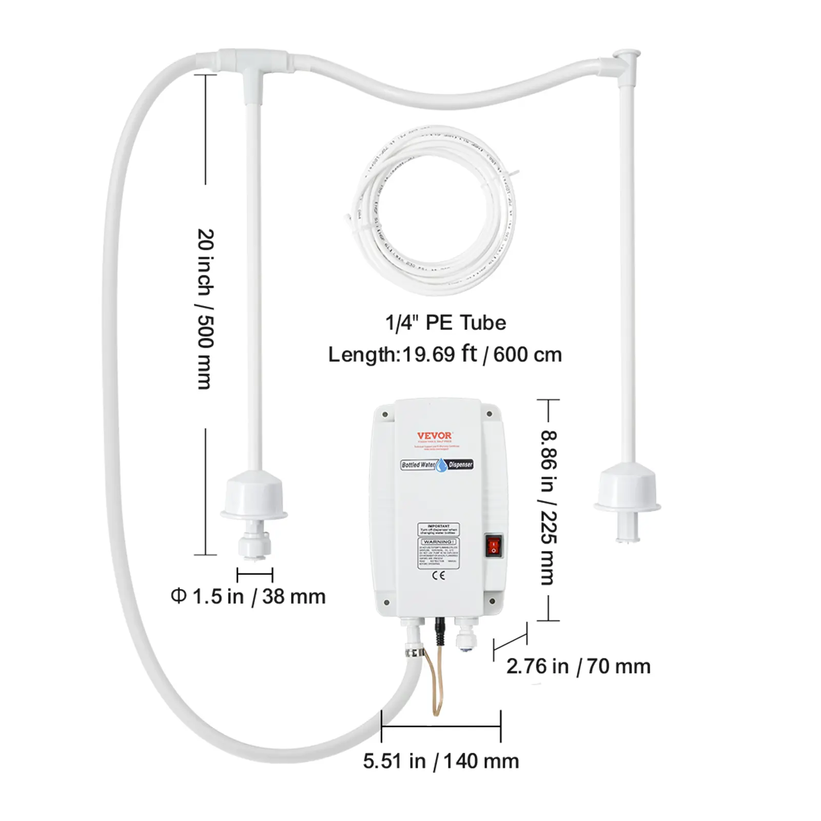 • Wide Voltage Dual-Tube Design: This bottled water dispenser pump system features a wide voltage dual-tube bottled water pump system, suitable for 5-gallon bottled water, delivering drinking water under pressure. It comes with 2 inlet pipes, effectively extending the water usage cycle and reducing the frequency of water changes. Powered by a 100-240V adapter, the wide voltage design eliminates concerns about voltage mismatch, easily adapting to various usage scenarios.