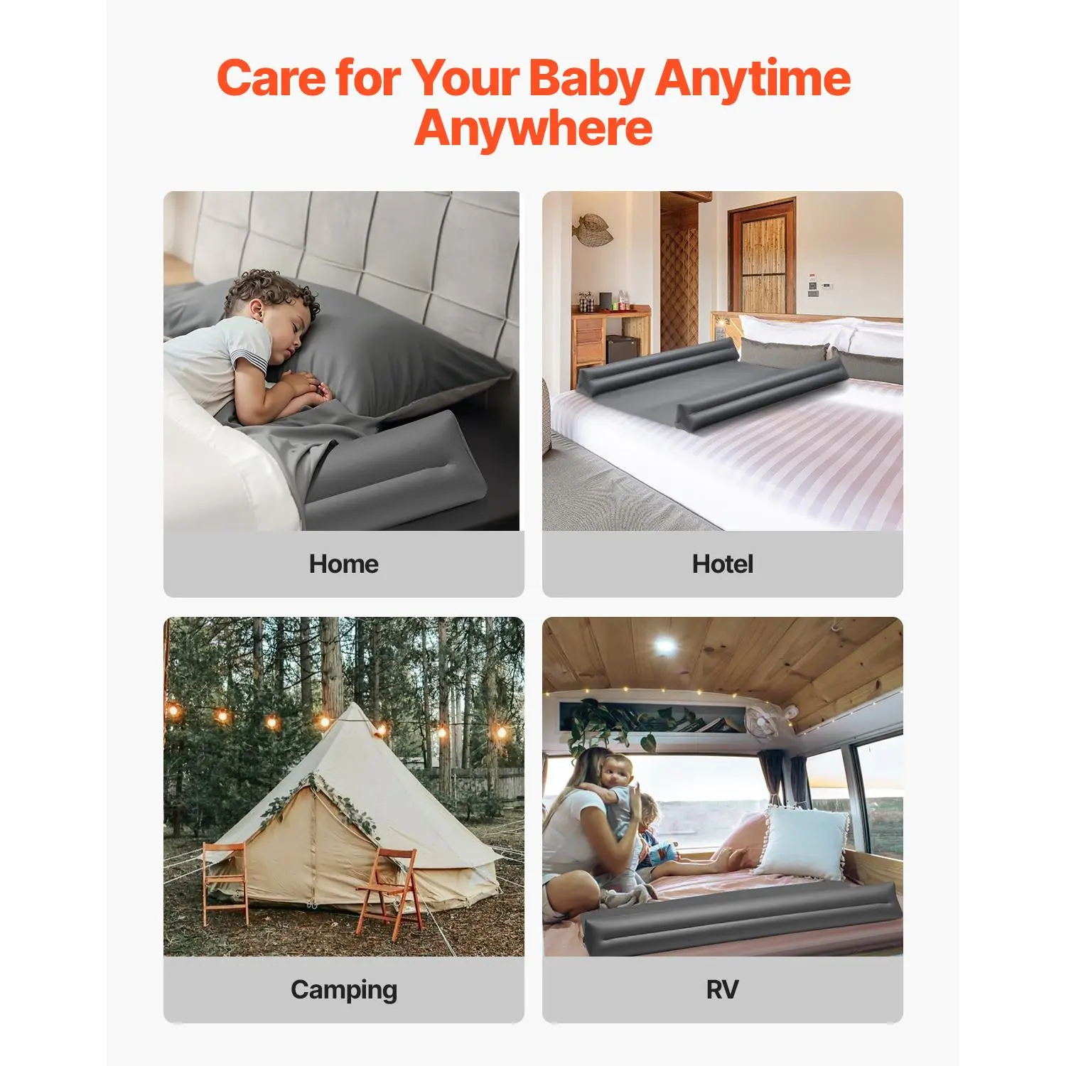 • Stay Safe, Anywhere You Go: Perfect for use at home or on the go — whether in a hotel, camping, or during travel—our portable guard rail with flap ensures your baby safe and comfortable wherever they are.