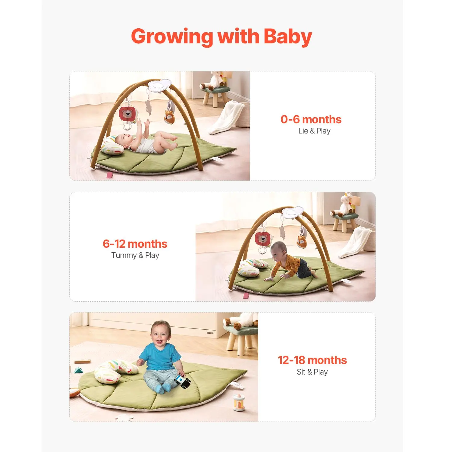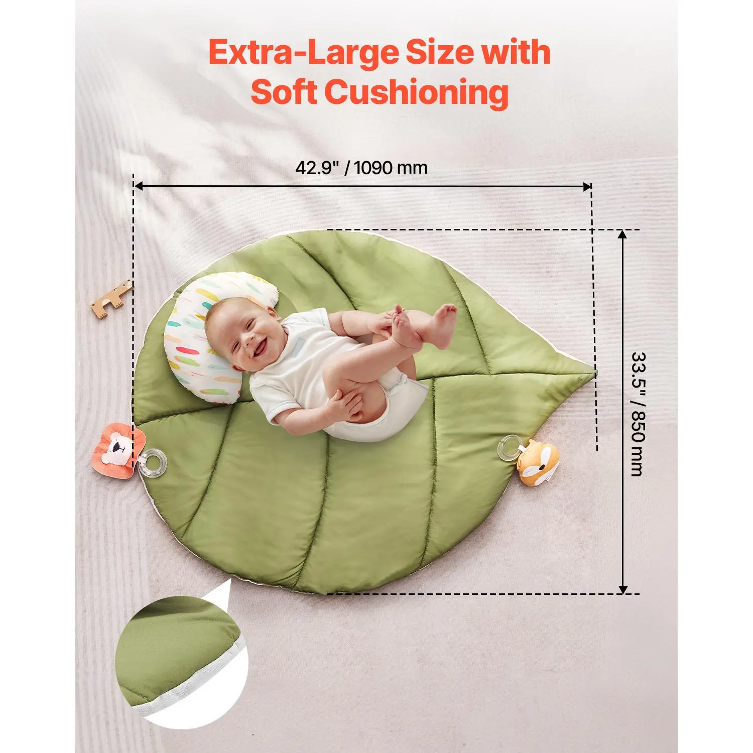 VEVOR Baby Play Gym Mat,  , Baby Activity Mat with 6 Sensory Toys, Oversize Leaf-Shaped Tummy Time Mat for 0-18 Months Newborn Infant, Baby Essential Gift for Motor Skills & Early Cognitive Development