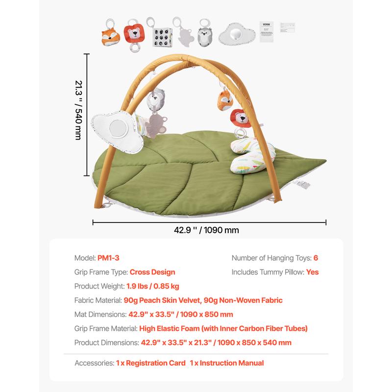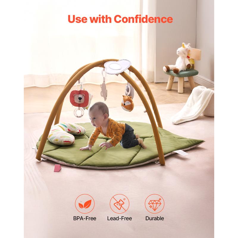 5. VEVOR Baby Play Gym Mat, Baby Activity Mat with 6 Sensory Toys, Oversize Leaf-Shaped Tummy Time Mat for 0-18 Months Newborn Infant, Baby Essential Gift for Motor Skills & Early Cognitive Development