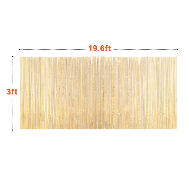 • Use Tips: As a natural product, each bamboo piece is unique, so color and diameter may vary. For outdoor use, we recommend regularly applying a layer of linseed oil or sealant to maintain the natural bamboo slat fencing's appearance.
