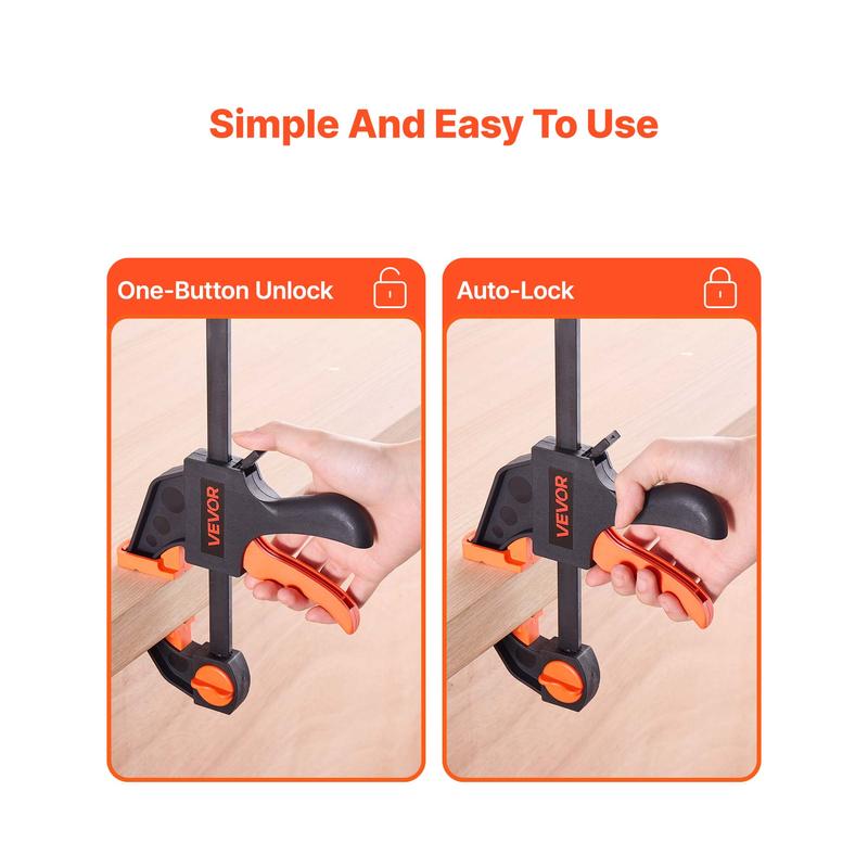 • With a 154 lbs load limit, these clamps handle daily tasks securely. They fix wood, wood products, and steel materials during cutting, joining, and installation.