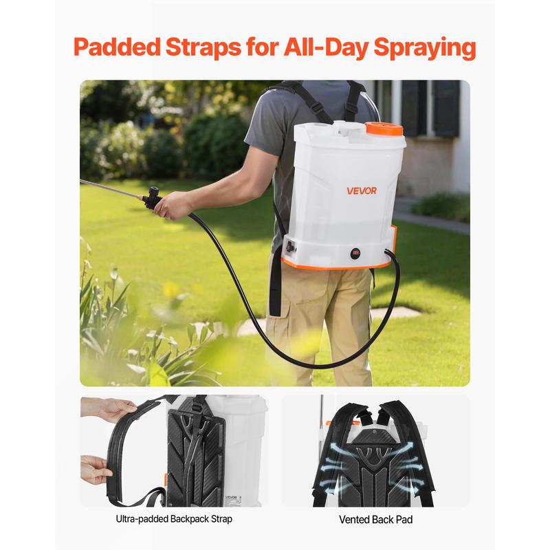 • Ergonomic Design for Comfort: Equipped with thickened, pressure-reducing shoulder straps and breathable memory foam padding, this battery-operated backpack sprayer ensures up to 8 hours of comfortable use, reducing work strain.