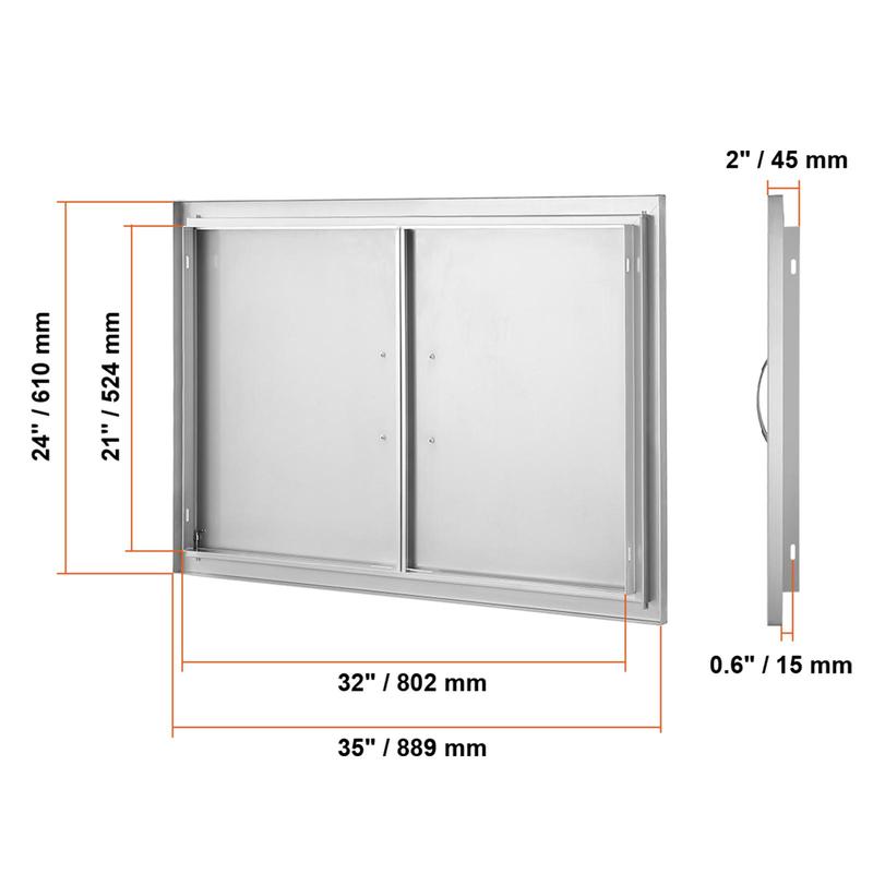 • Precision Opening: Overall dimensions: 889x610x45 mm / 35x24x2 inches, installation size: 32x21inch/802x524mm, it is recommended to reserve an additional 0.08inch/2mm on this basis for better operation. The door is designed specifically for outdoor kitchens and barbecue islands, adding an elegant touch to your cooking area. With precise dimensions, it is easy to process, install, or dismantle. Available in various sizes and styles, it is perfect for indoor/outdoor kitchens and all other outdoor weather conditions.