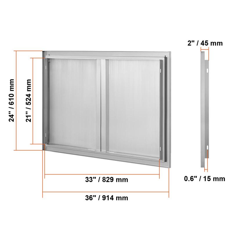 • Precision Opening: Overall dimensions: 914x610x45 mm / 36x24x2 inches, installation size: 33x21inch/829x524mm, it is recommended to reserve an additional 0.08inch/2mm on this basis for better operation. The door is designed specifically for outdoor kitchens and barbecue islands, adding an elegant touch to your cooking area. With precise dimensions, it is easy to process, install, or dismantle. Available in various sizes and styles, it is perfect for indoor/outdoor kitchens and all other outdoor weather conditions.