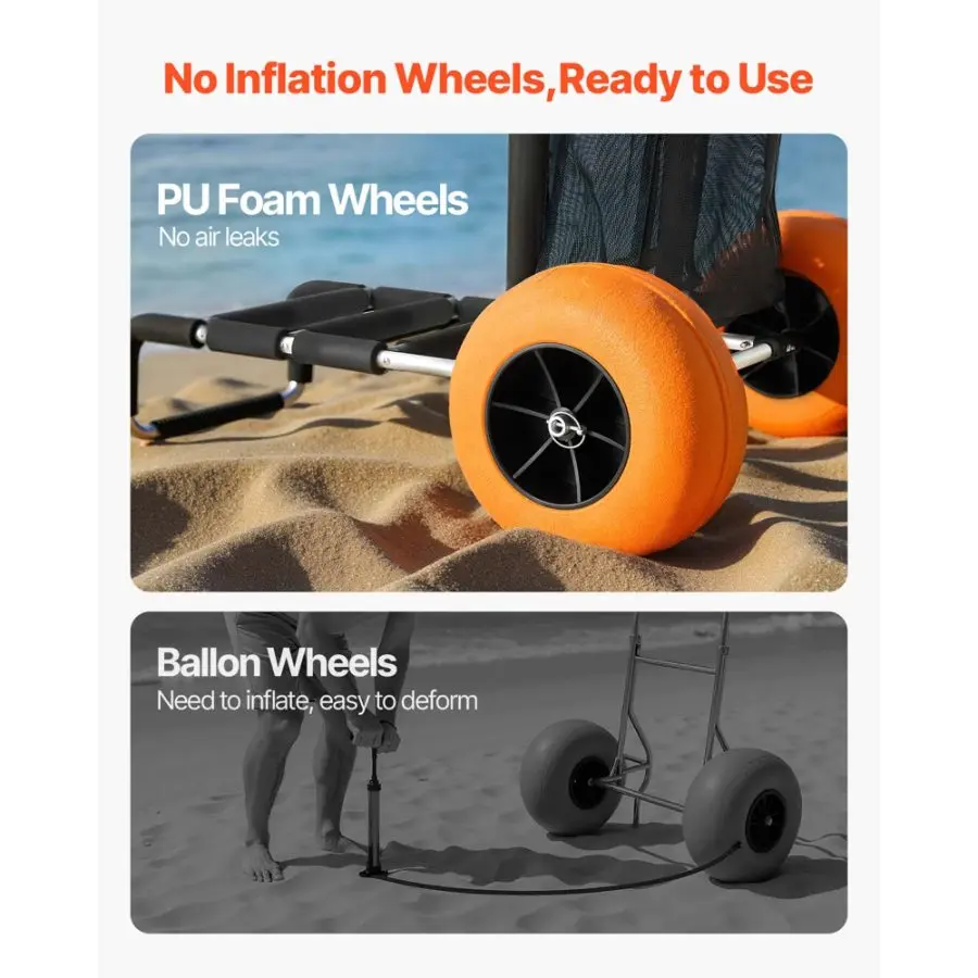VEVOR Beach Dolly with Big Wheels for Sand, 20.1x 14.6 Cargo Deck, w/ 9 Balloon Wheels, 165LBS Loading Capacity Folding Sand Cart 27.2 to 44.9 Adjustable Height, Heavy Duty Cart for BeachVEVOR Beach Dolly with Big Wheels for Sand, 29.9" x 15.4" Cargo Deck, w/ 12" Solid Wheels, 165LBS Loading Capacity Folding Sand Cart & 27" to 44.7" Adjustable Height, Heavy Duty Cart for Beach Easily Transport Multiple Items Smooth Mobility Rust-Resistant and Durable Space-Saving