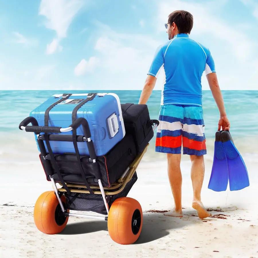 5. VEVOR Beach Dolly with Big Wheels for Sand, 20.1x 14.6 Cargo Deck, w/ 9 Balloon Wheels, 165LBS Loading Capacity Folding Sand Cart 27.2 to 44.9 Adjustable Height, Heavy Duty Cart for Beach