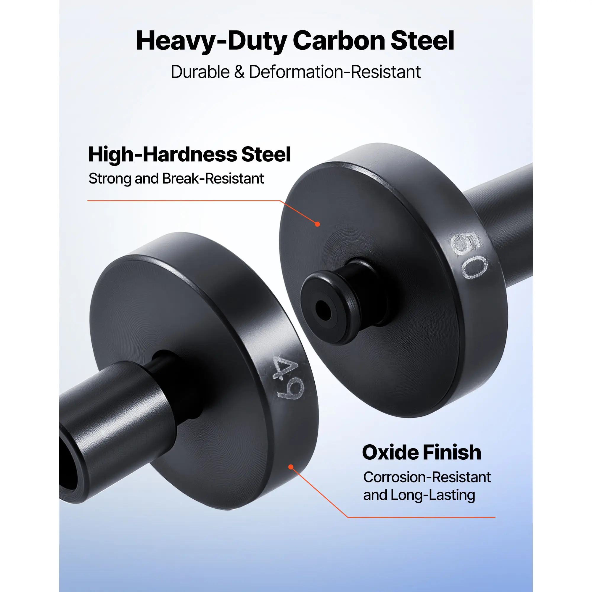 The driver tool is made of high-hardness steel, with thickened disc sleeves that withstand heavy blows from hammers or chisels. The set features an oxidized black coating for rust & wear resistance and durability. Ideal for tough, demanding projects.