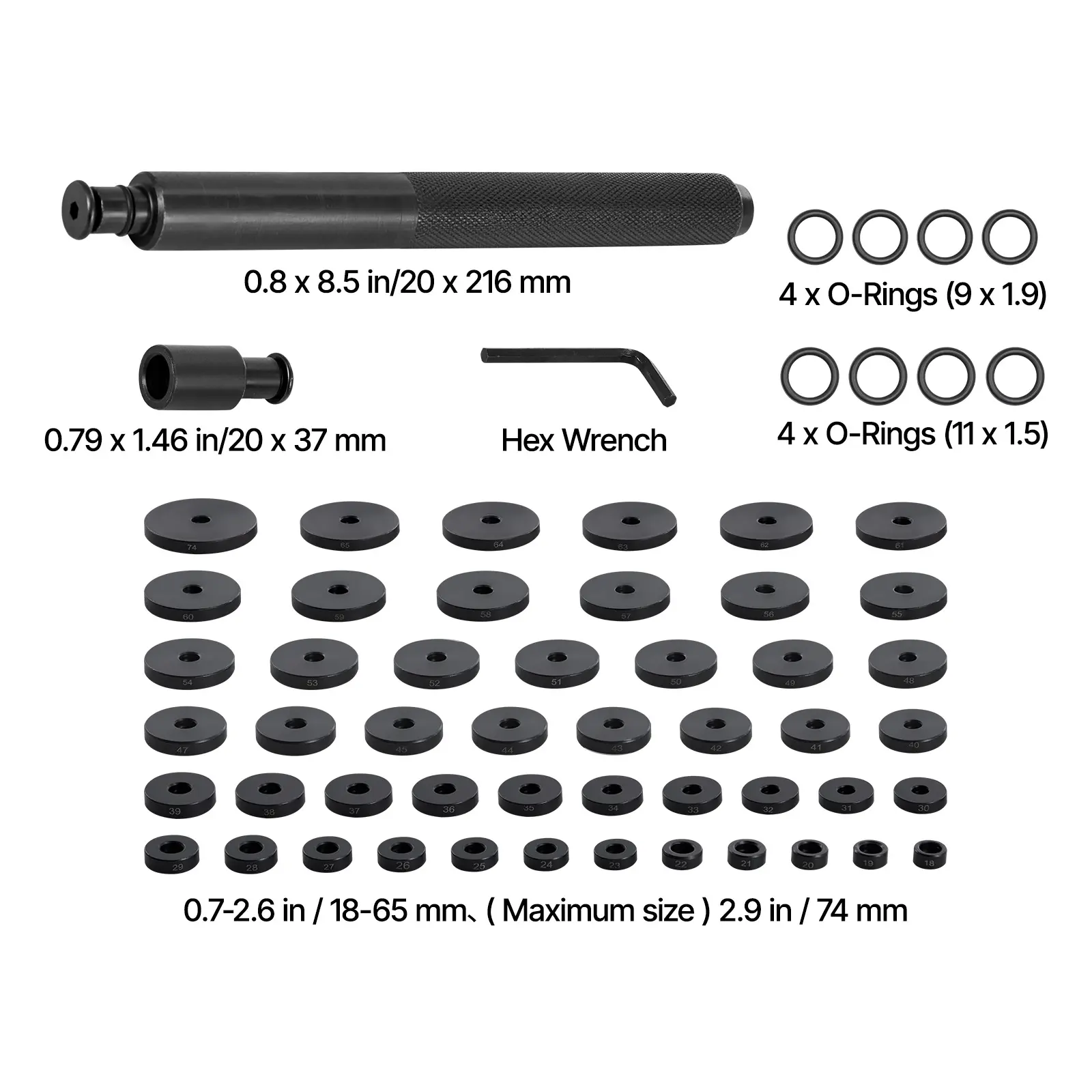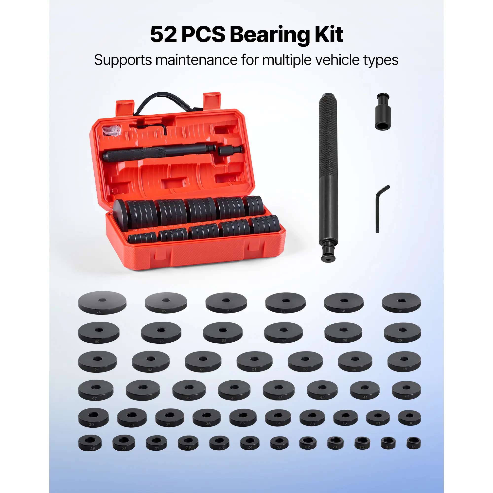 • Comprehensive Sizes: This kit handles various bearing disassembly tasks. It includes 52 pcs of commonly used disc sleeve sizes and multiple assembly accessories. Perfect for a wide range of applications, ensuring you have the right tools for every job.