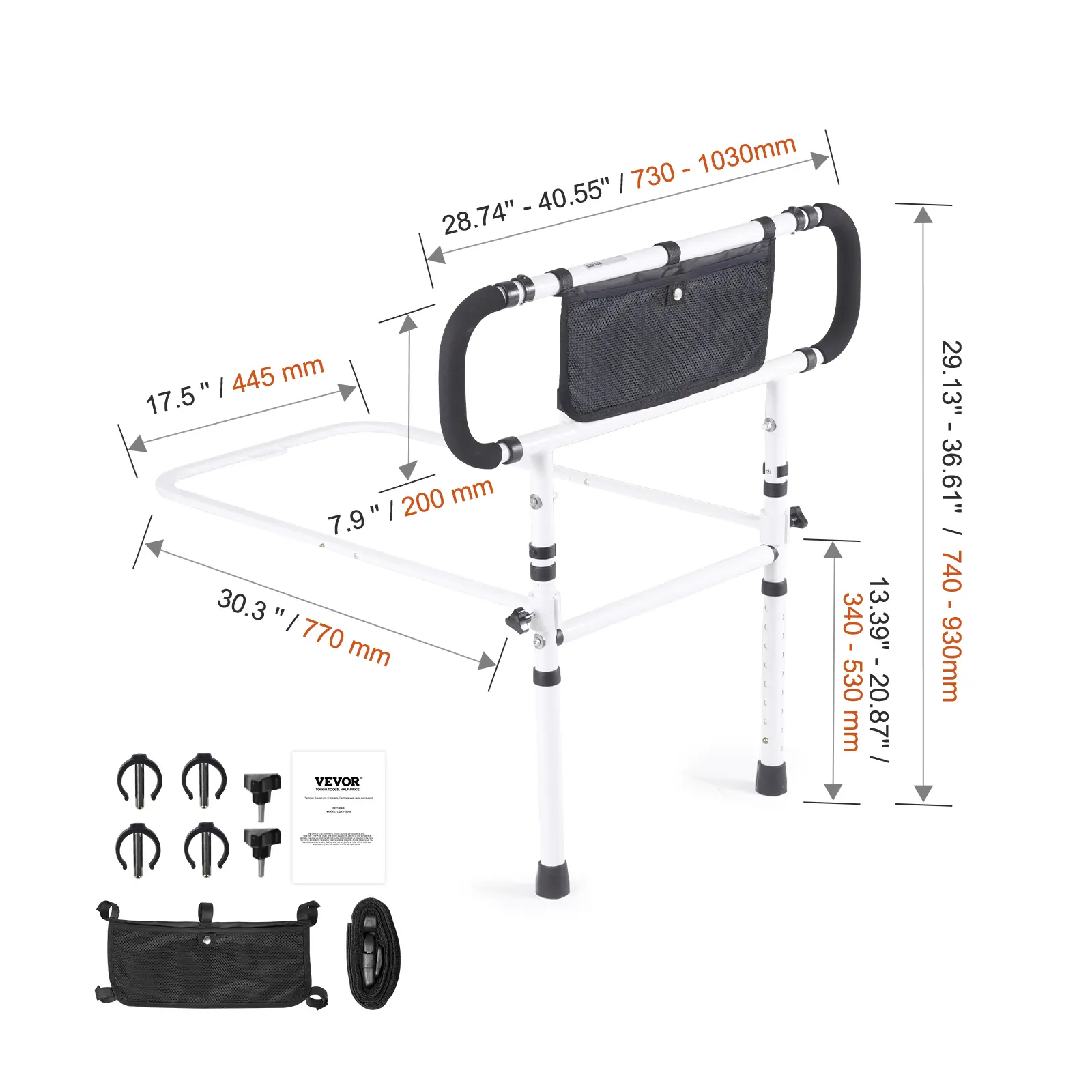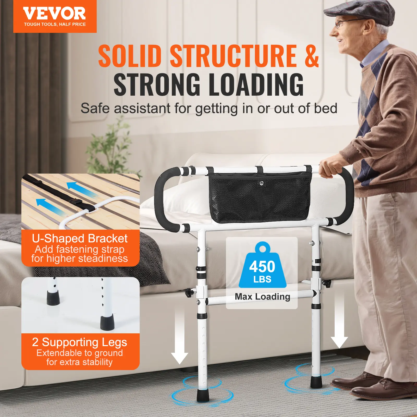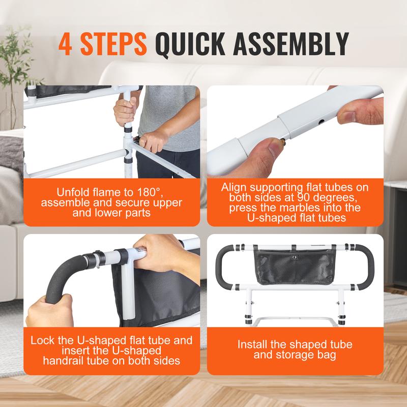 • Safety Reinforced: VEVOR's bed rails for elderly adults, boast a robust carbon steel structure. Accompanied by two supporting legs, a U-shaped bracket, and secure fastening strap, it supports up to 450lbs. This is an essential aid for seniors, expectant mothers, and those with mobility challenges.