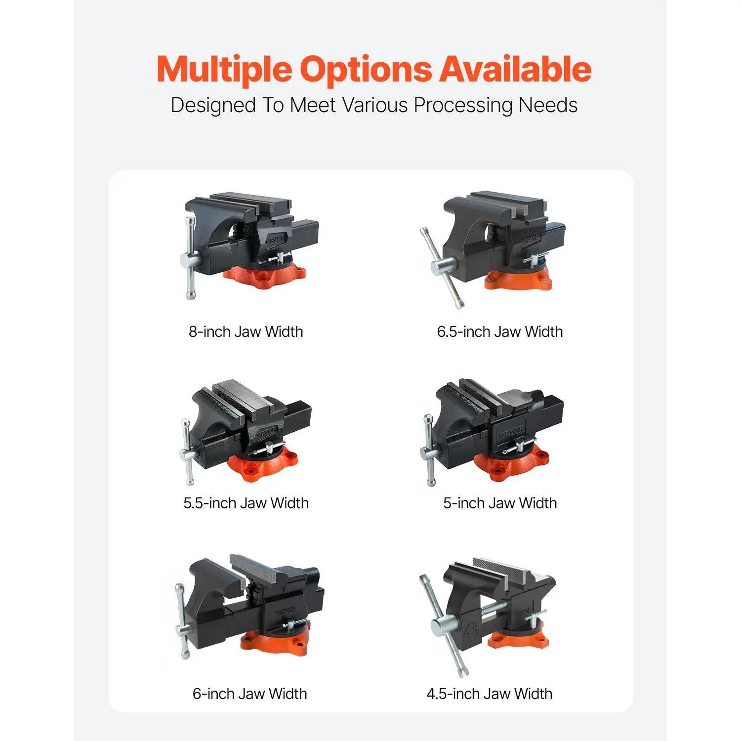 • 360-Degree Rotating Base: The 360-degree rotating base allows for easy adjustments and enables you to position your work at the desired angle. No matter if you're doing intricate detail work or heavy-duty processing, our multipurpose workbench vise offers the flexibility you need to work with ease and speed.