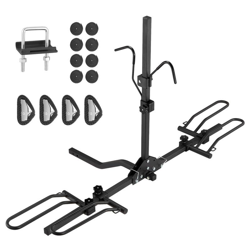 • Keep Your Bikes Stable: Designed to fit small to medium-sized cars, SUVs, pickup trucks, and RVs equipped with 1.25-inch or 2-inch hitch receivers. The safety latch and anti-wobble device reduce wobble during transport for a smoother journey. With a 26.7-inch connection pipe, there's ample distance, great for vehicles with spare tires mounted at the rear.